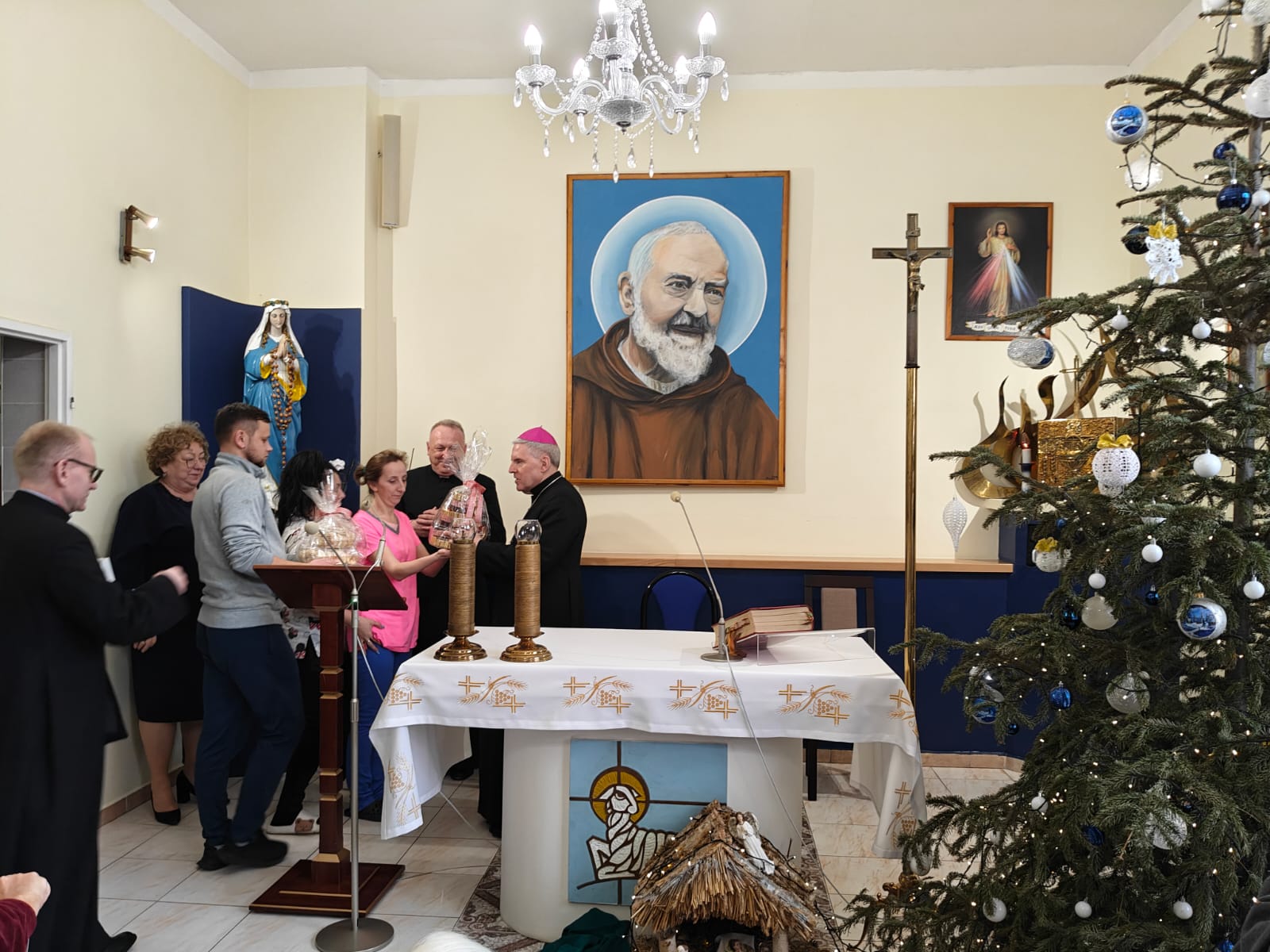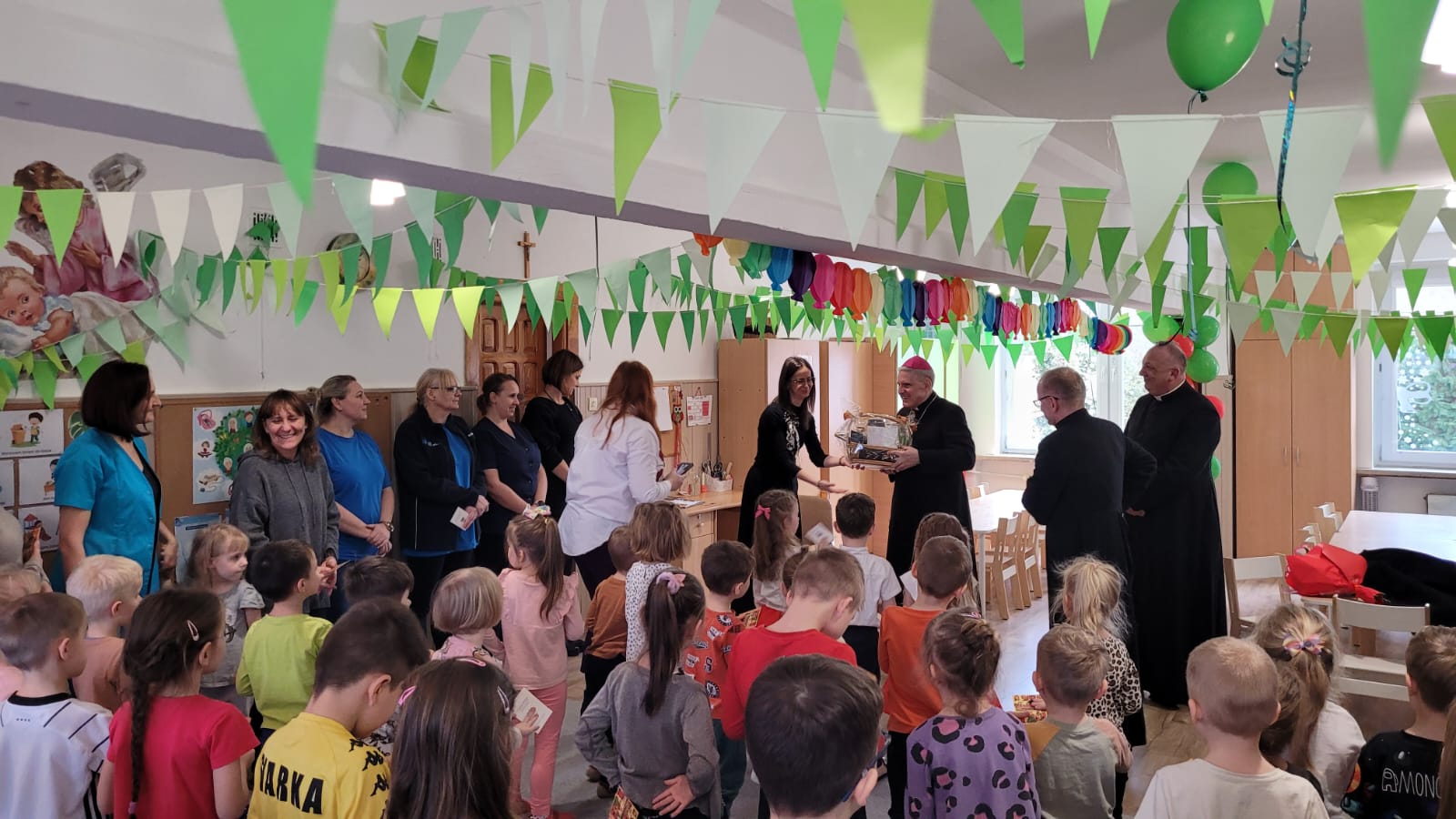 Popołudnie upłynęło na dalszych wizytach w ważnych miejscach naszej wspólnoty. Biskup odwiedził Przedszkole Katolickie, gdzie został serdecznie powitany przez najmłodszych parafian. Kolejnymi punktami były Hospicjum św. Ojca Pio oraz Dom św. Matki Teresy, gdzie spotkał się z mieszkańcami i personelem. Podczas wizyty na cmentarzu parafialnym nie zabrakło refleksji i modlitwy.