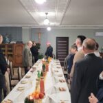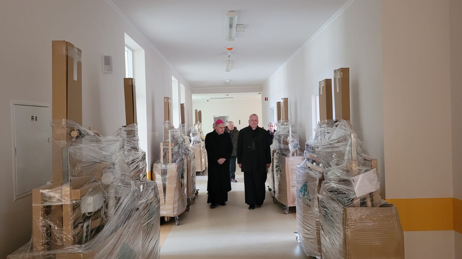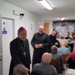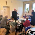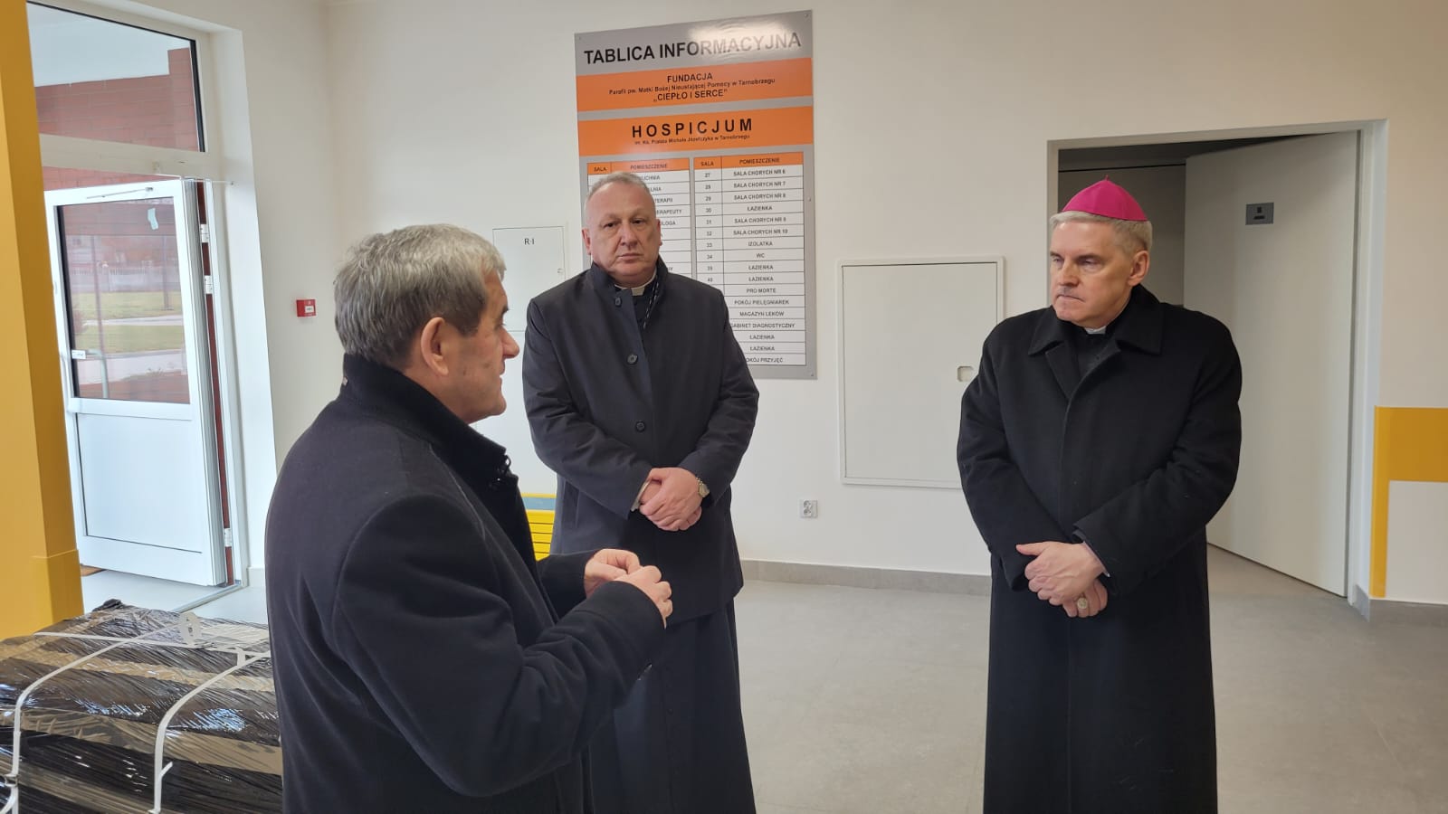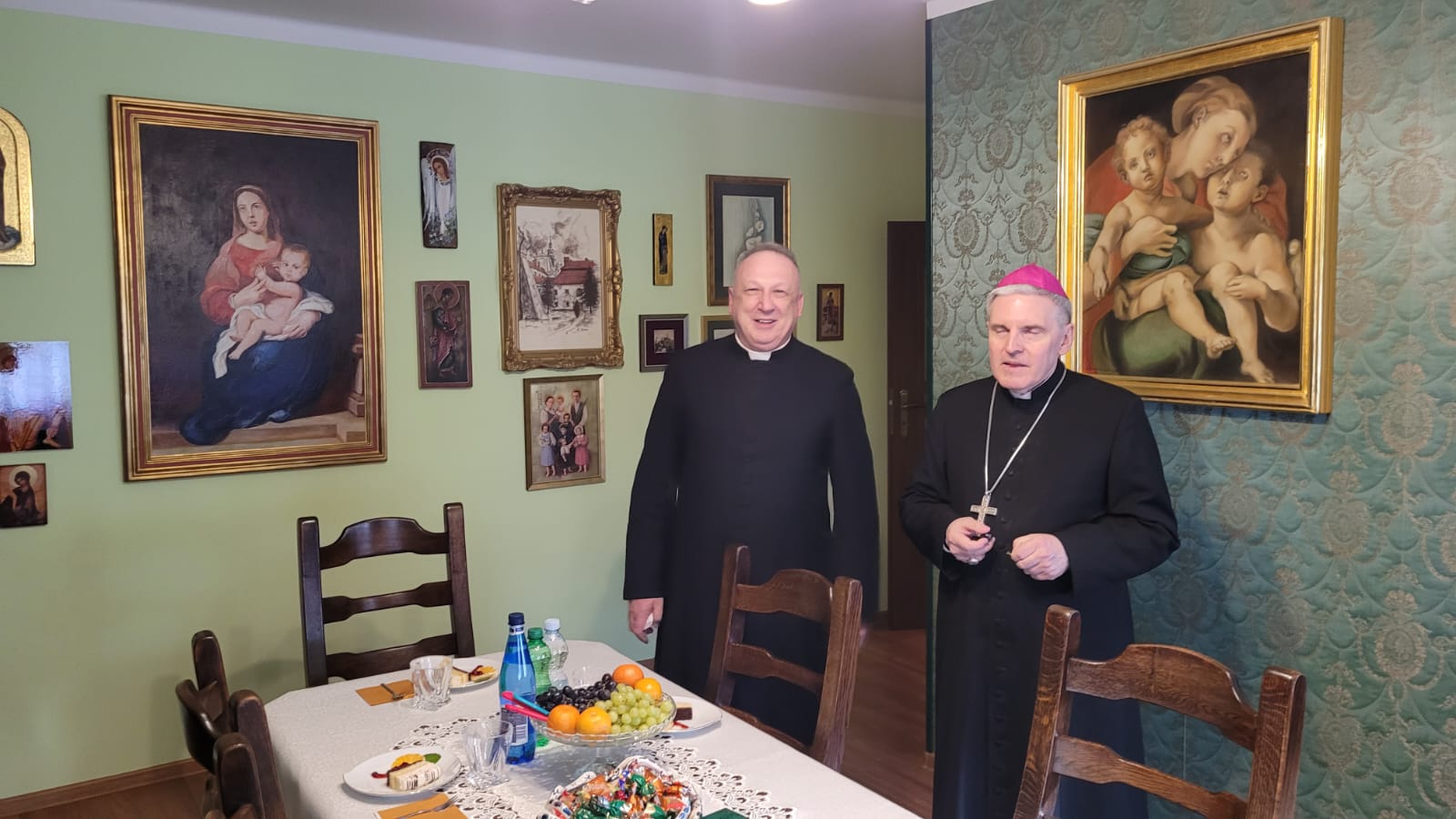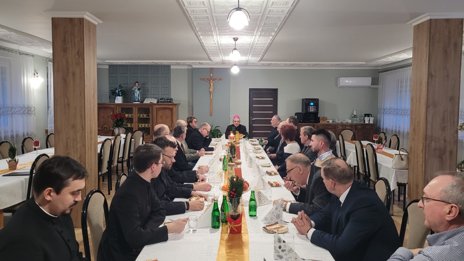 Kolejnym punktem wizyty było odwiedzenie powstającego hospicjum w Miechocinie. Spotkanie z osobami zaangażowanymi w realizację tego ważnego projektu pozwoliło wyrazić uznanie dla ich pracy i zaangażowania. Po wizycie Biskup Krzysztof wspólnie z księżmi pracującymi w parafii spotkali się przy stole na wspólnym obiedzie. Była to okazja do rozmów związanych z duszpasterstwem. Następnie Biskup podpisał księgi parafialne i odwiedził mieszkania księży, okazując zainteresowanie ich codziennym życiem oraz posługą kapłańską.