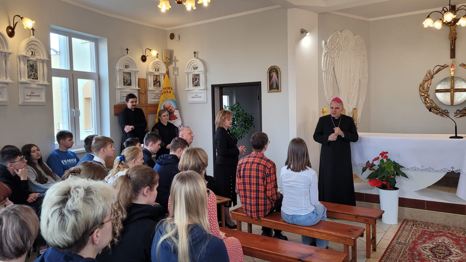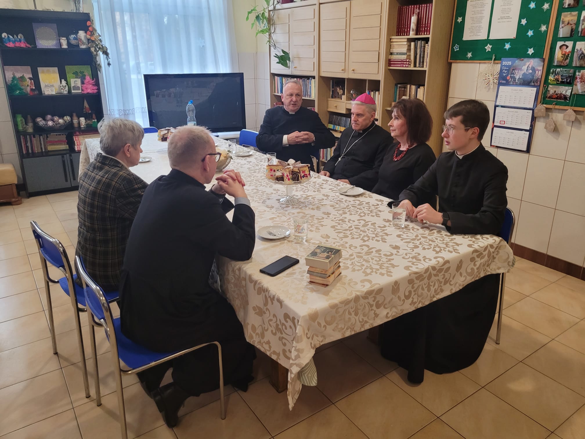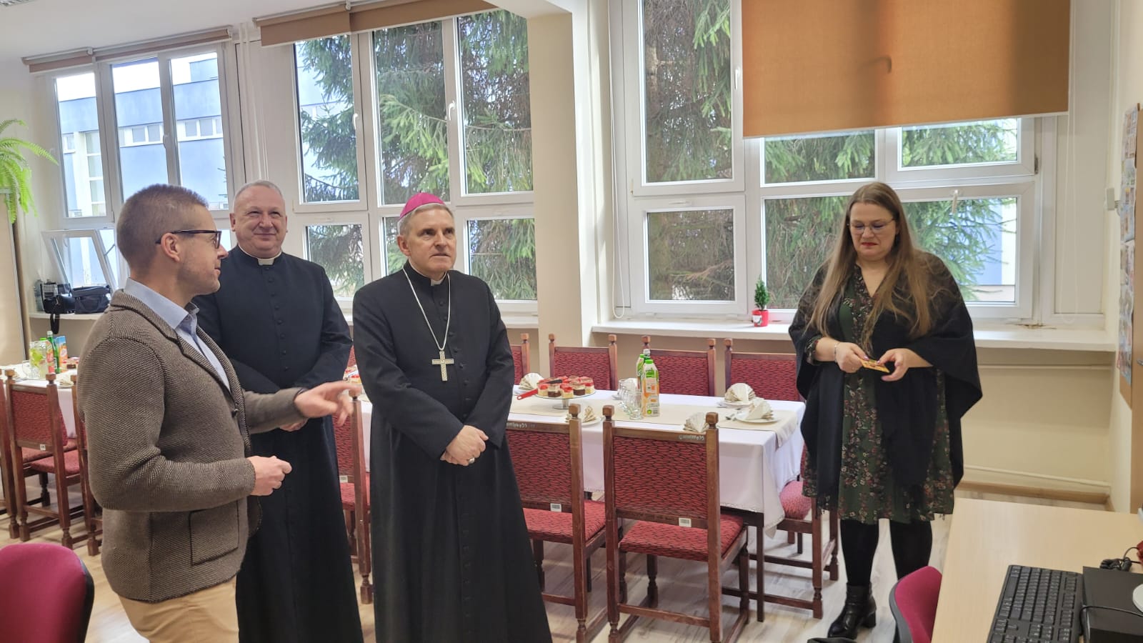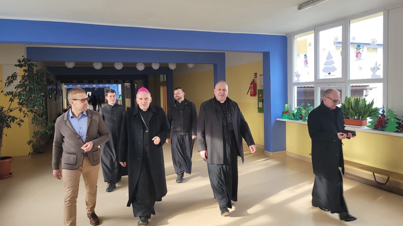 Wizyta Biskupa rozpoczęła się od porannego spotkania w Warsztatach Terapii Zajęciowej, gdzie miał okazję porozmawiać z Osobami korzystającymi z ośrodka oraz Personelem. Następnie odwiedził Katolickie Szkoły oraz Szkołę Podstawową Nr 10, gdzie uczestniczył w rozmowach z uczniami i nauczycielami, podkreślając wagę edukacji opartej na wartościach chrześcijańskich.