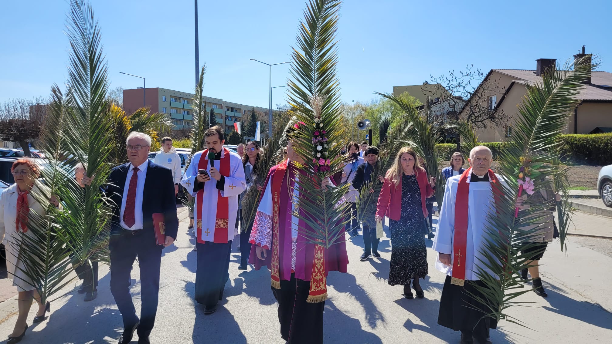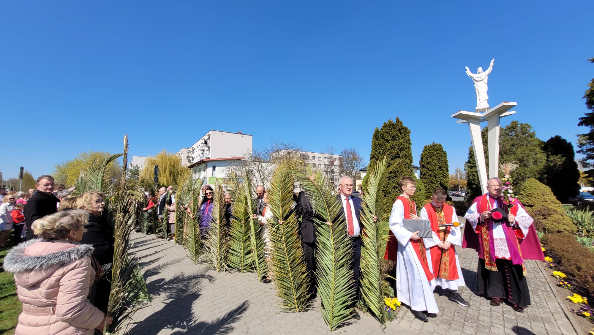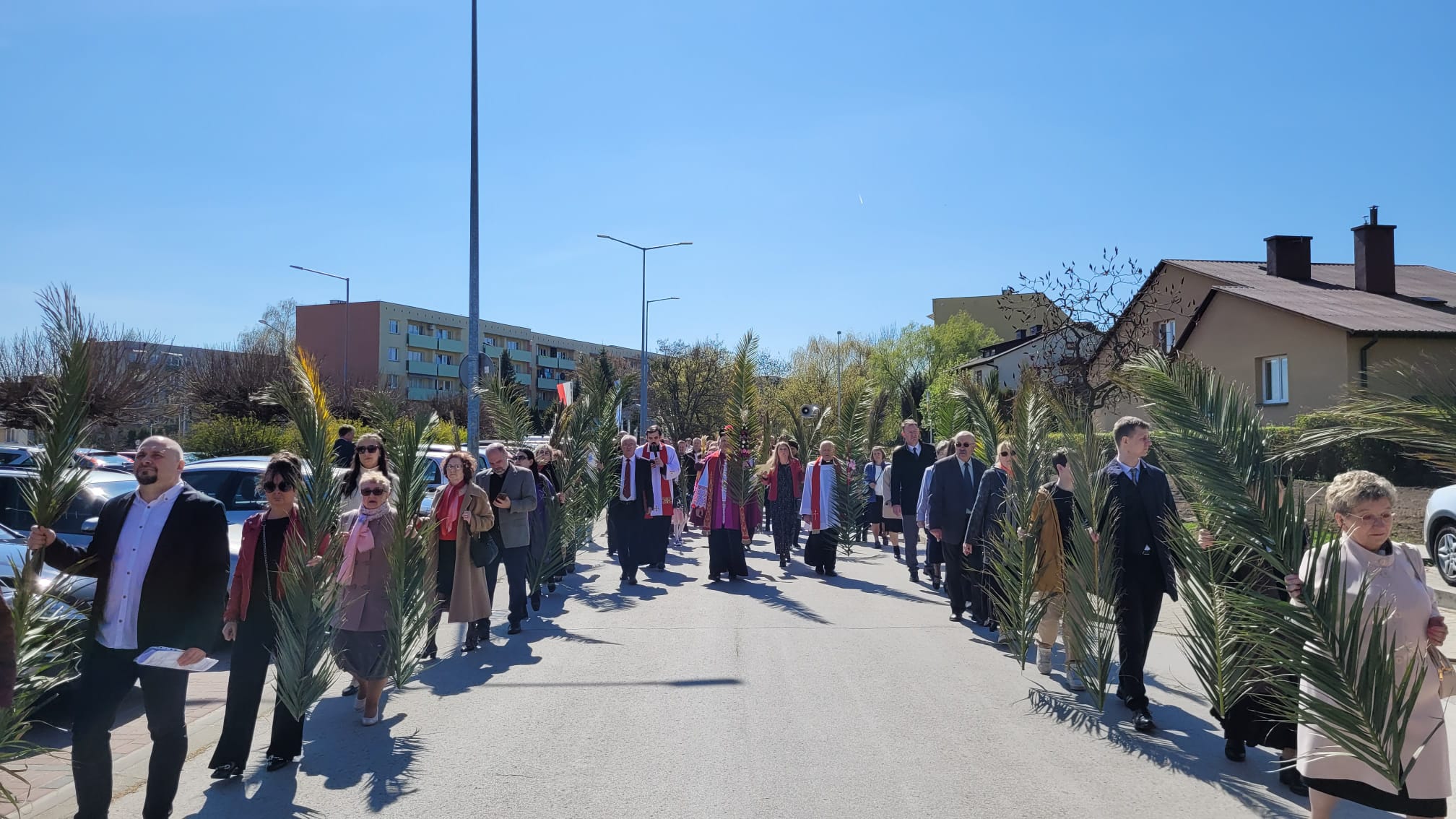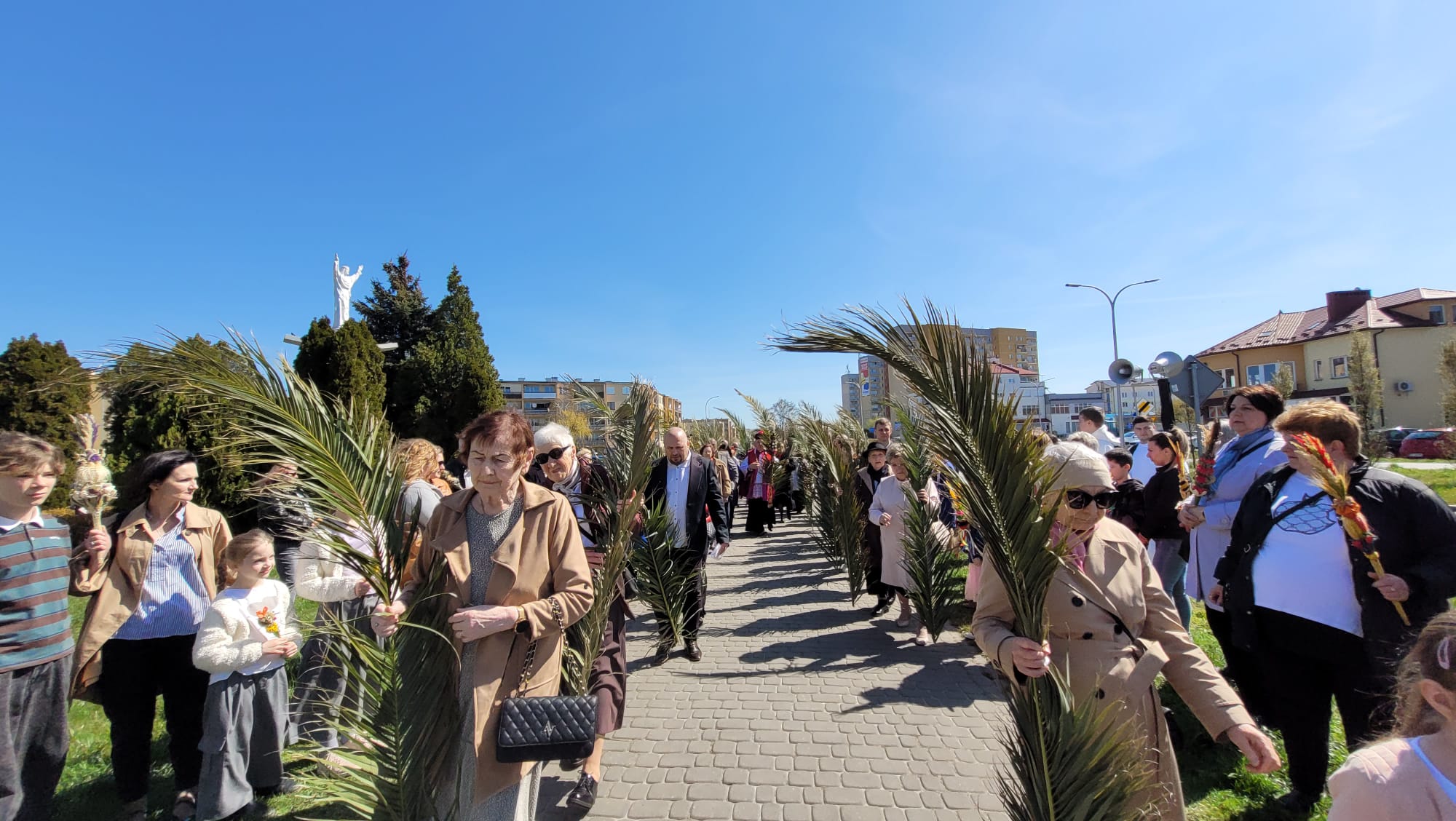 O godzinie 11:10, przy figurze Chrystusa Zmartwychwstałego, rozpoczęła się uroczysta procesja z palmami, prowadząca do kościoła parafialnego. Wierni, niosąc palmy i śpiewając pieśni liturgiczne, wspominali triumfalny wjazd Jezusa do Jerozolimy.