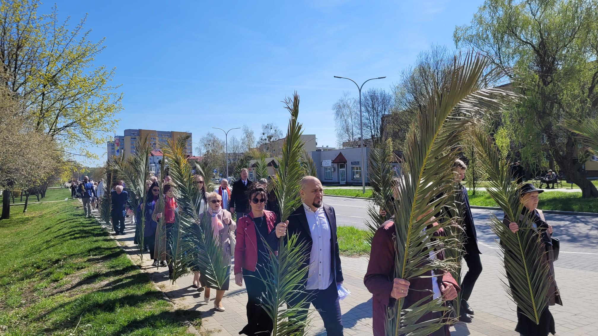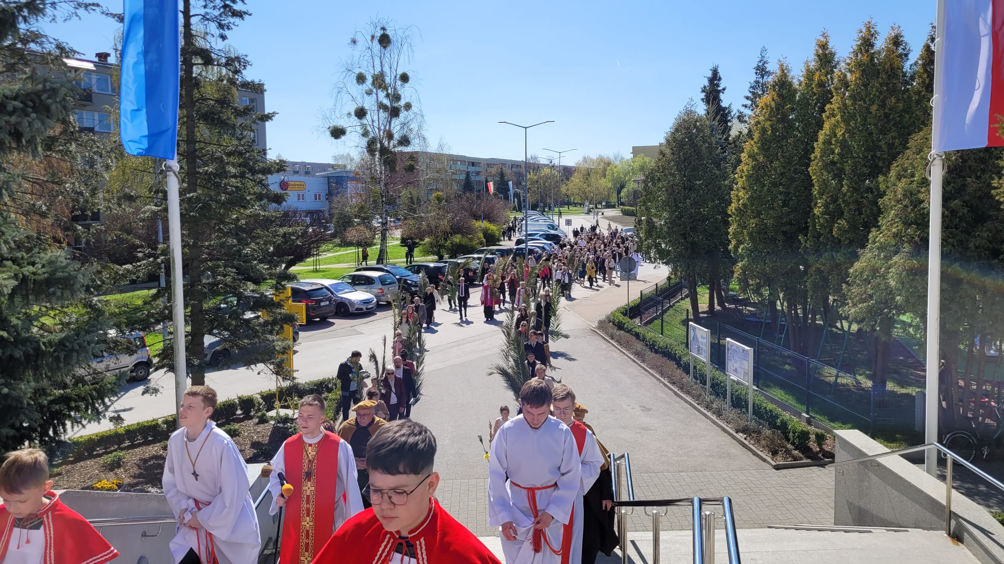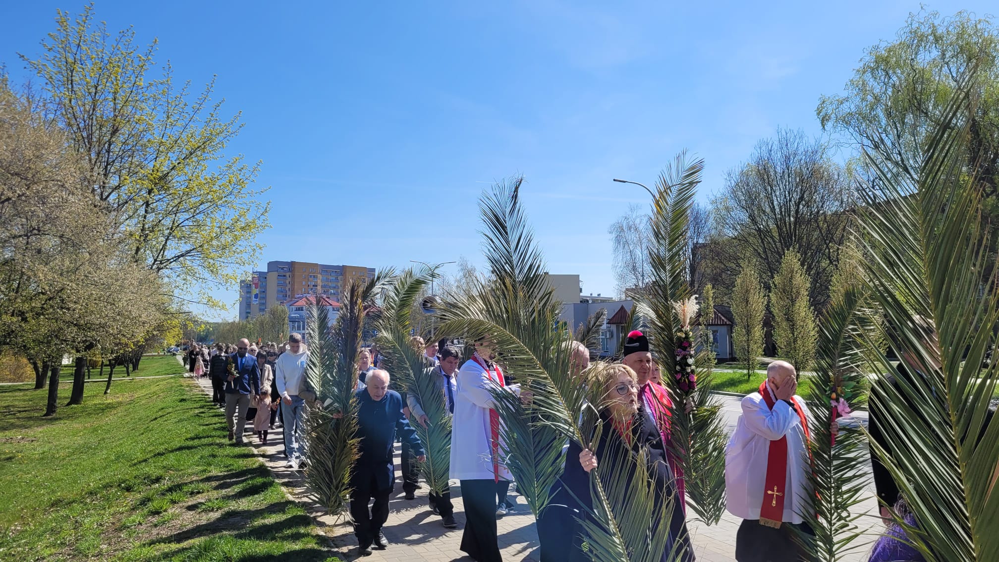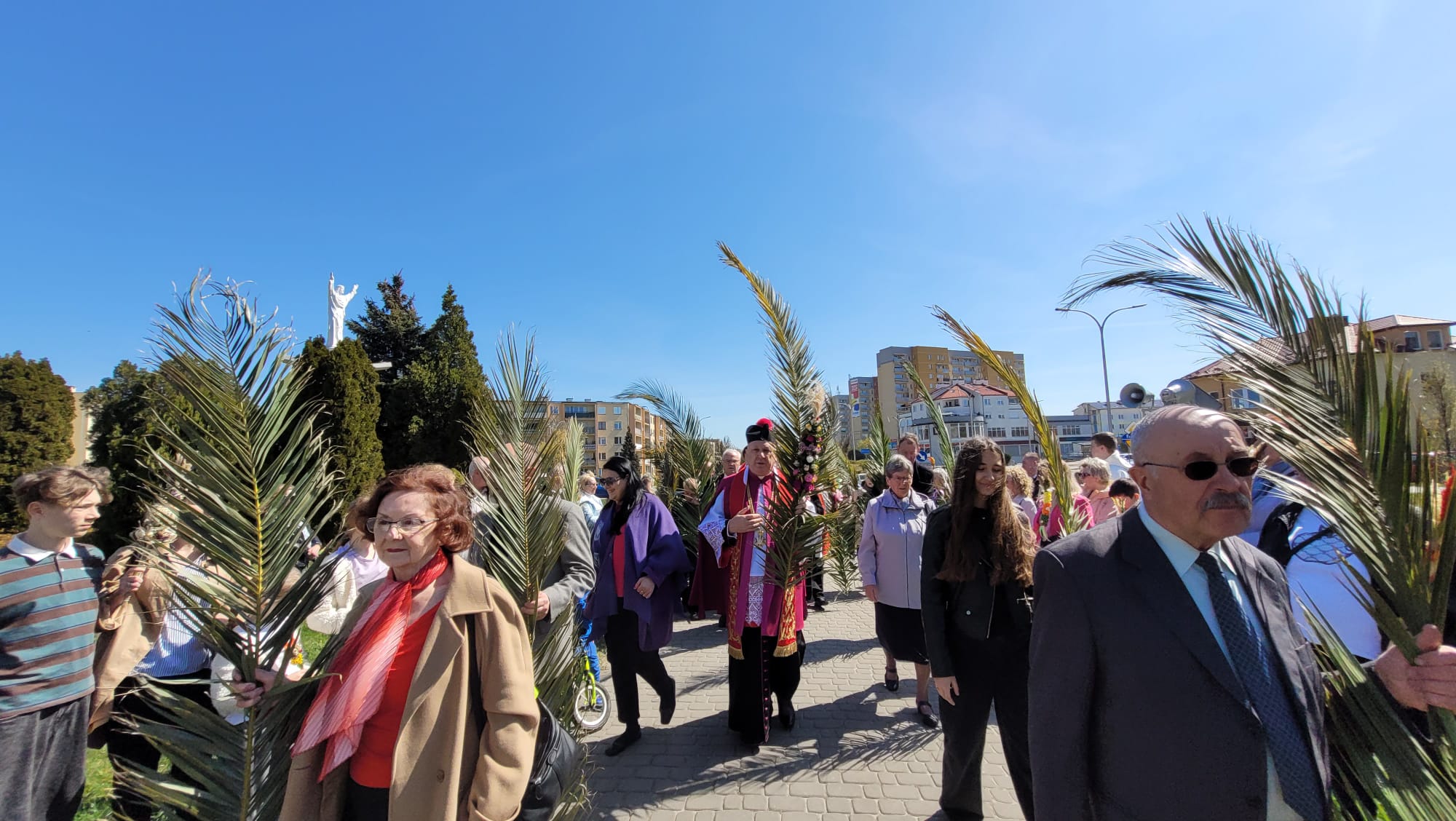 O godzinie 11:10, przy figurze Chrystusa Zmartwychwstałego, rozpoczęła się uroczysta procesja z palmami, prowadząca do kościoła parafialnego. Wierni, niosąc palmy i śpiewając pieśni liturgiczne, wspominali triumfalny wjazd Jezusa do Jerozolimy.
