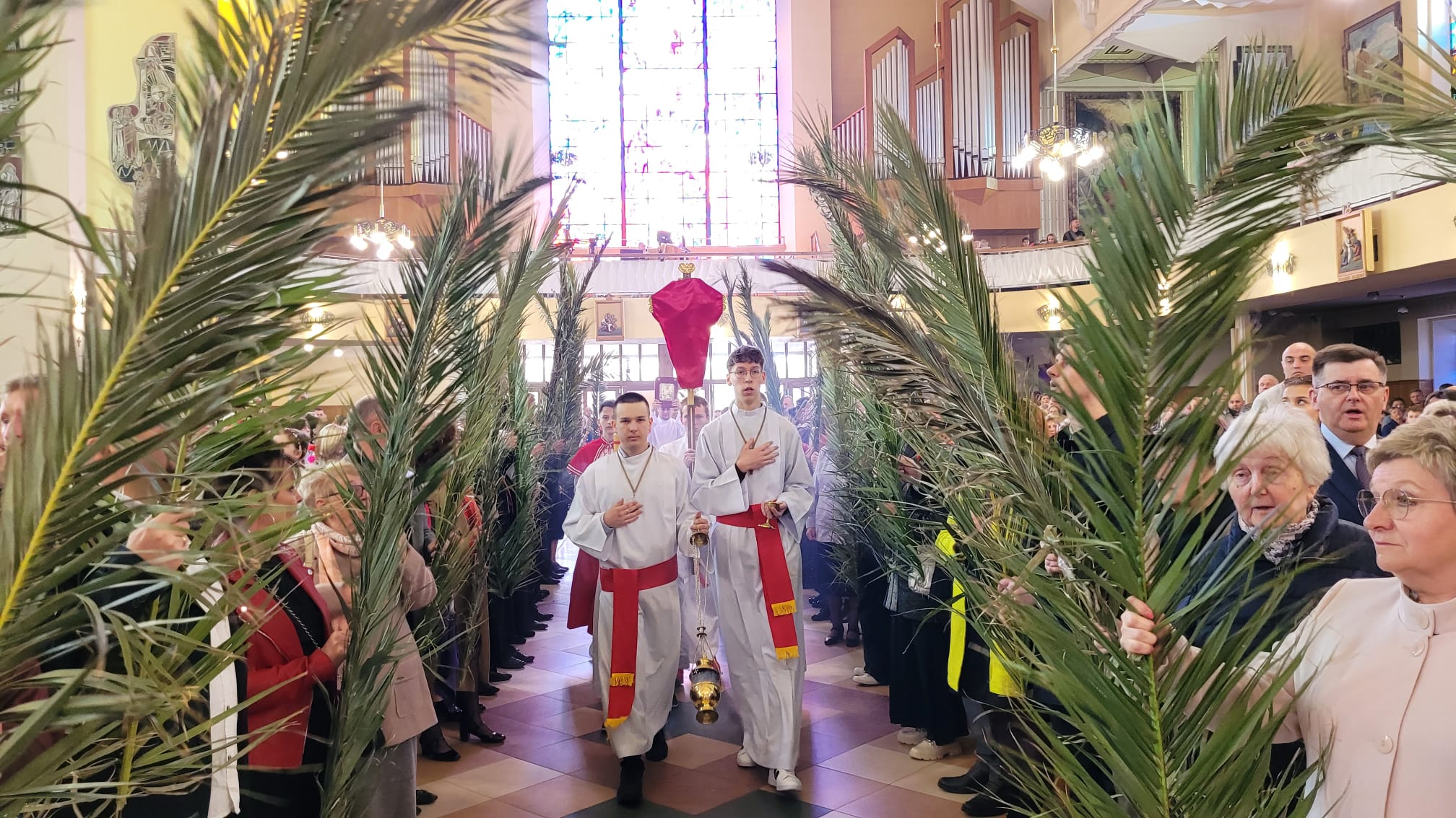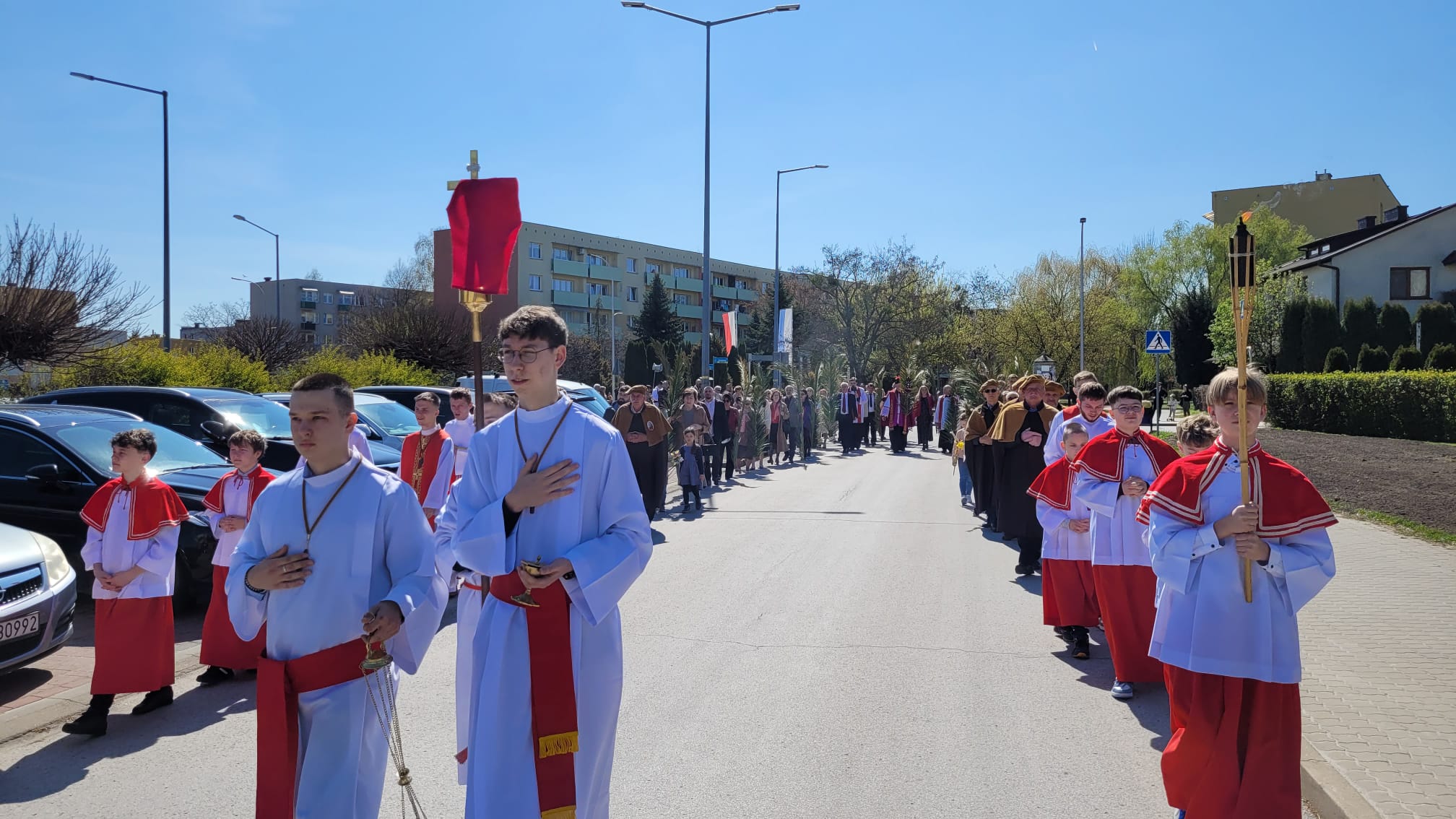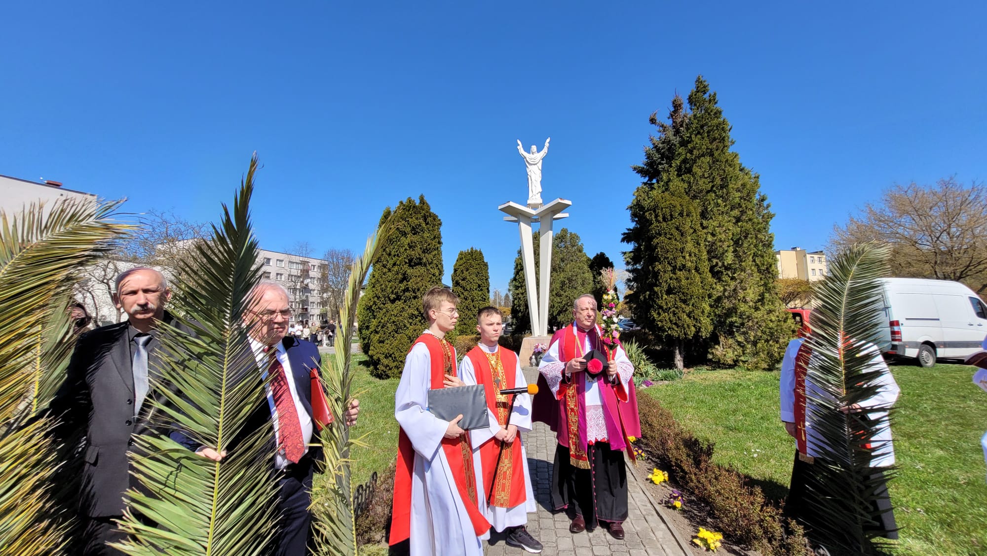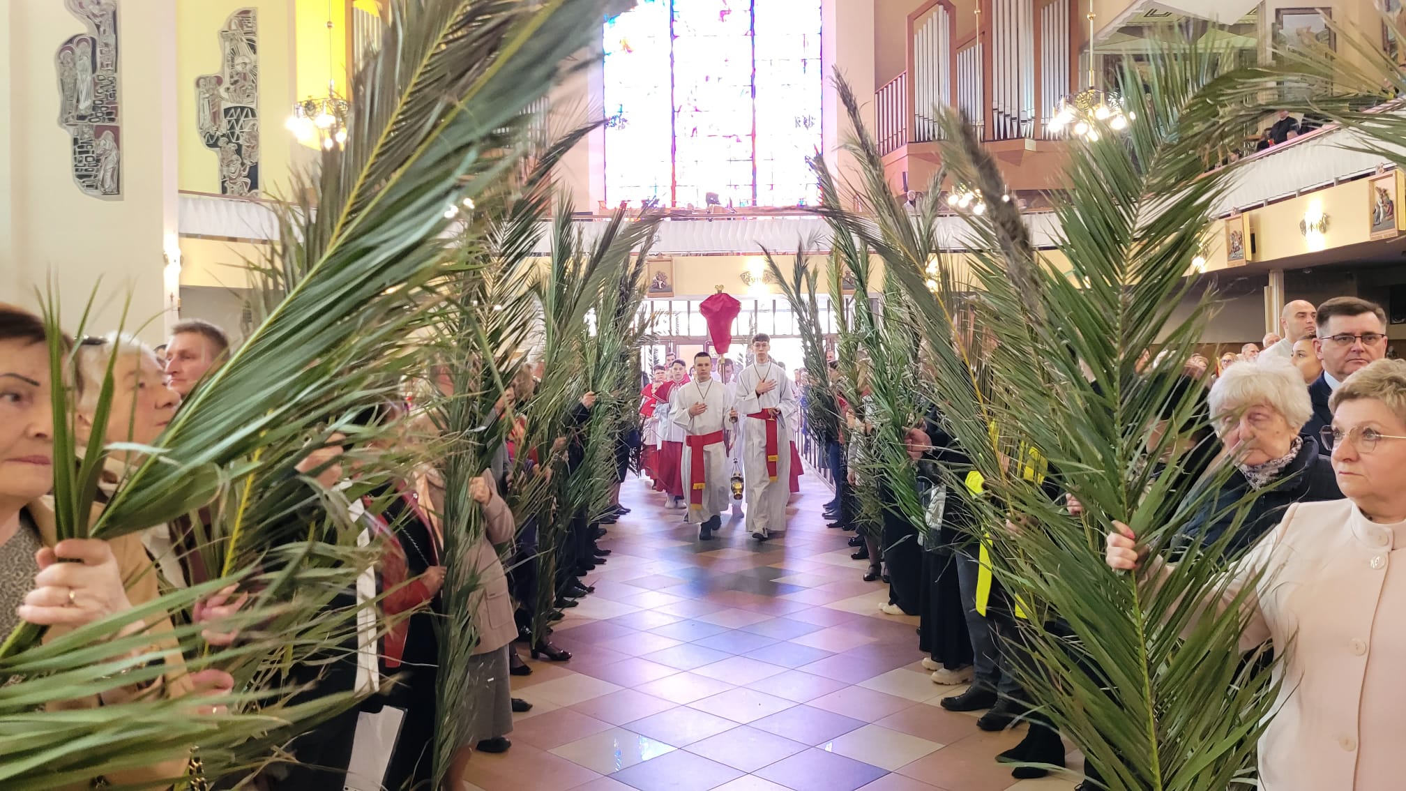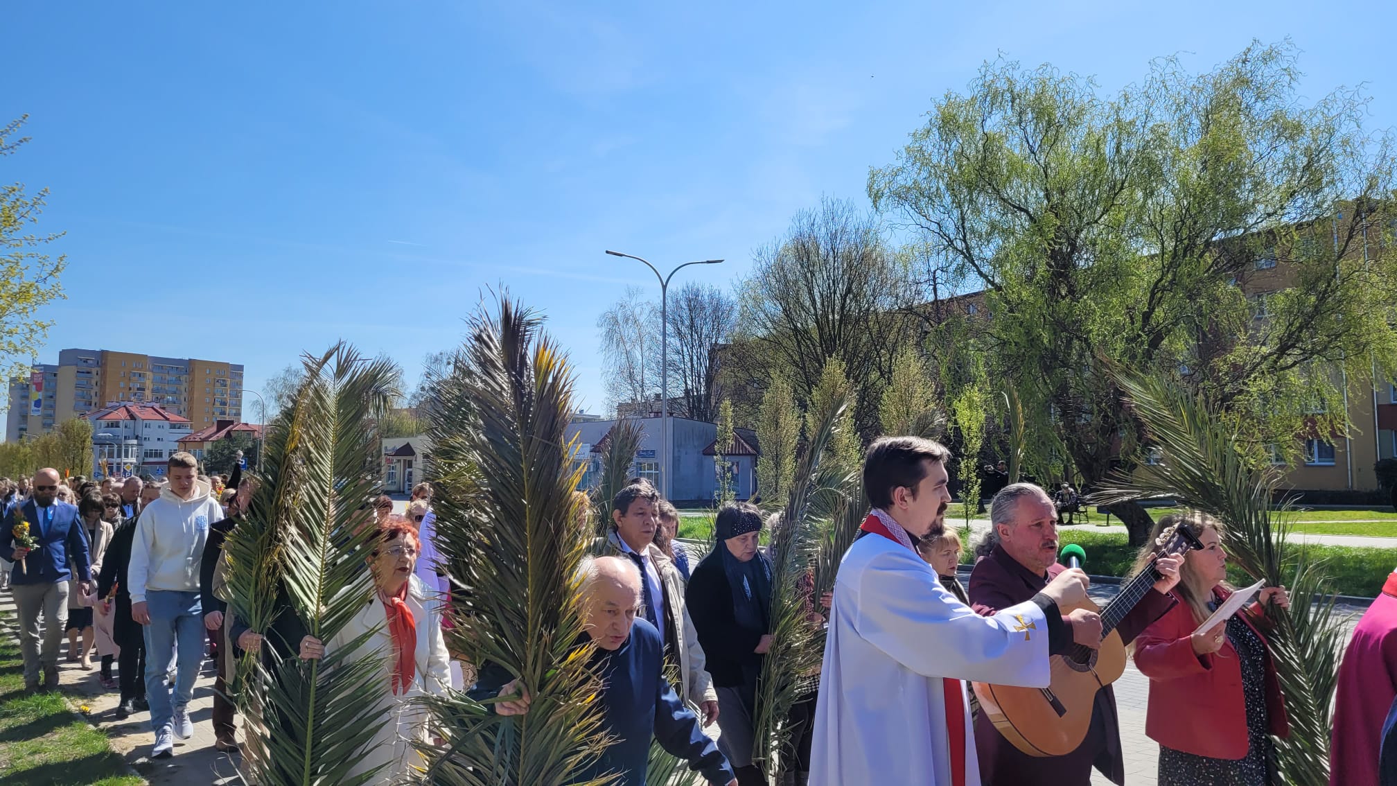 O godzinie 11:10, przy figurze Chrystusa Zmartwychwstałego, rozpoczęła się uroczysta procesja z palmami, prowadząca do kościoła parafialnego. Wierni, niosąc palmy i śpiewając pieśni liturgiczne, wspominali triumfalny wjazd Jezusa do Jerozolimy.