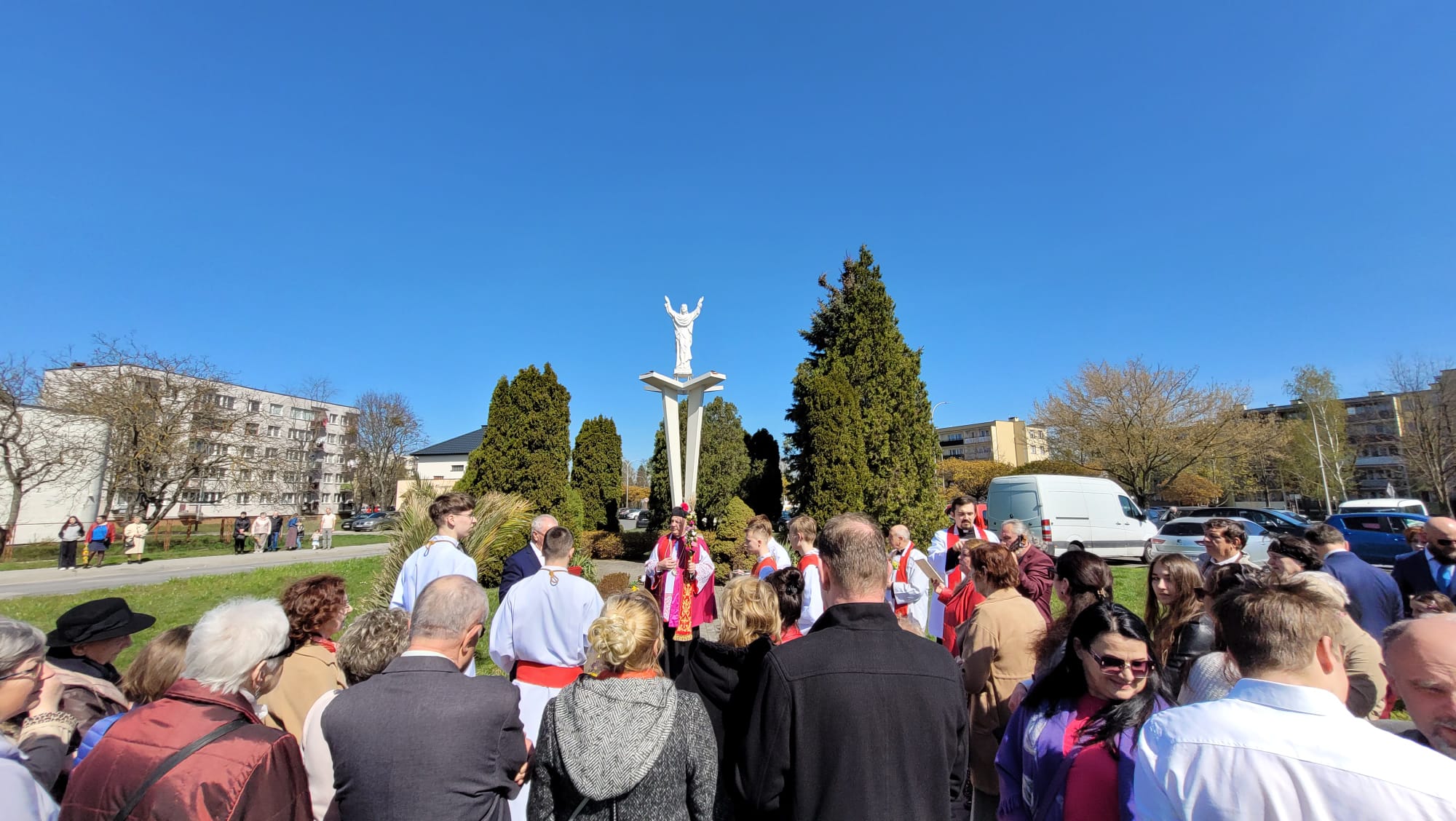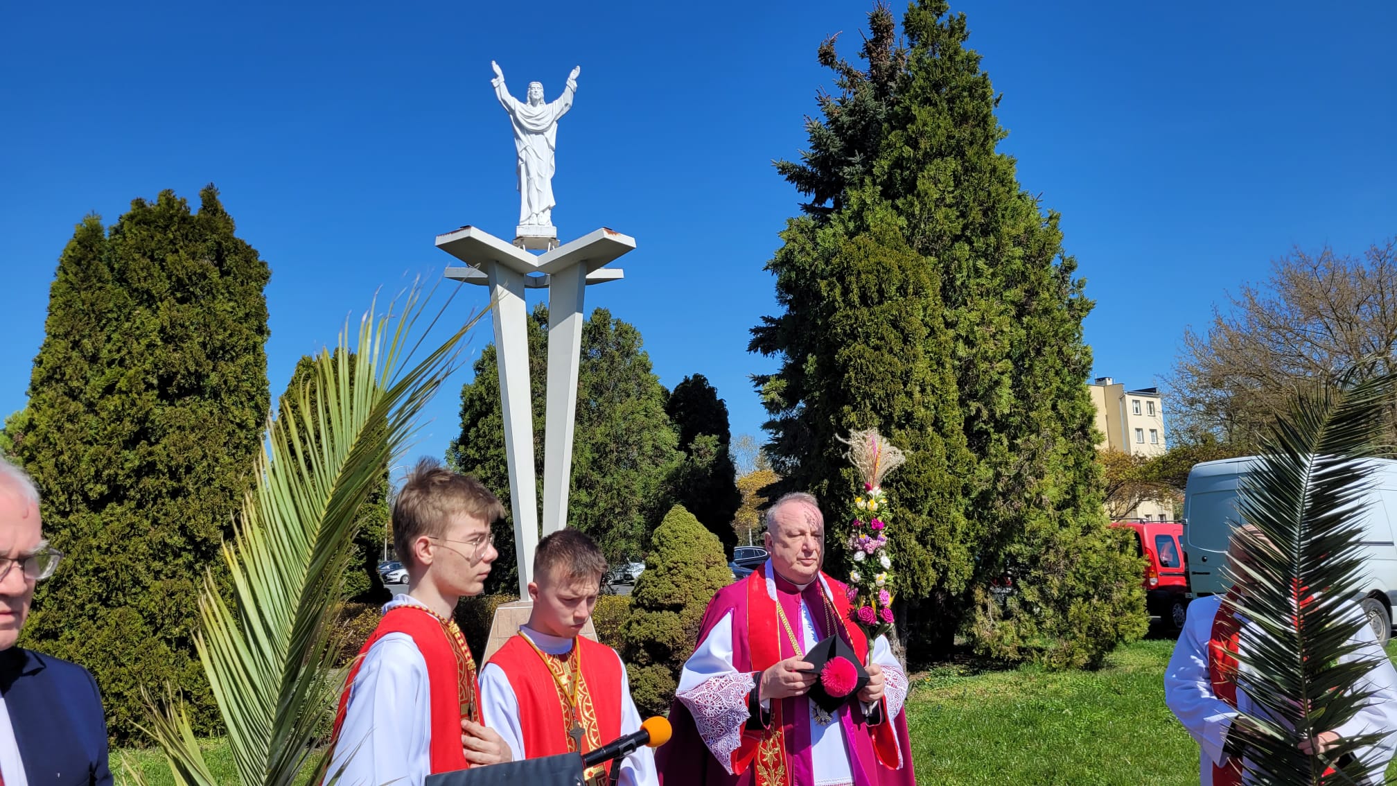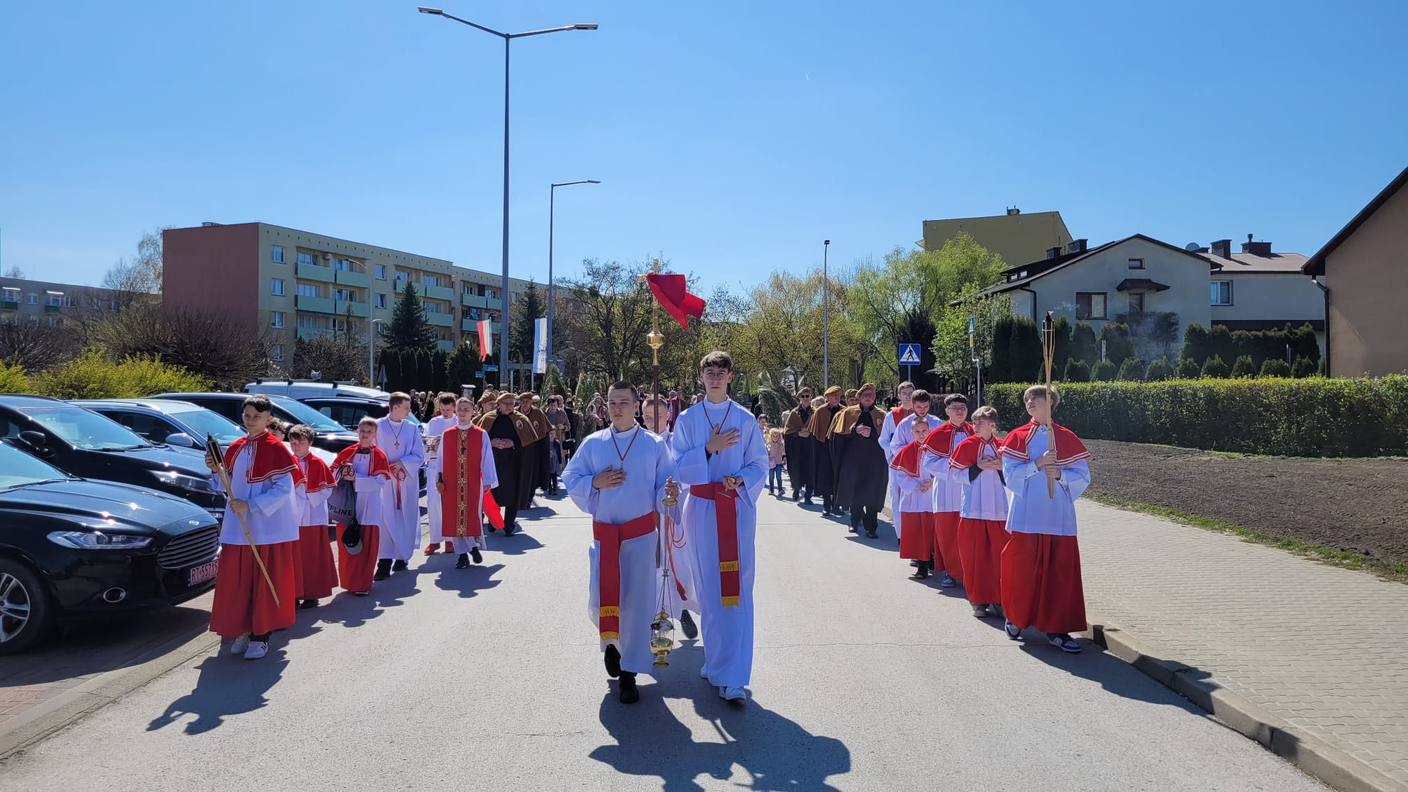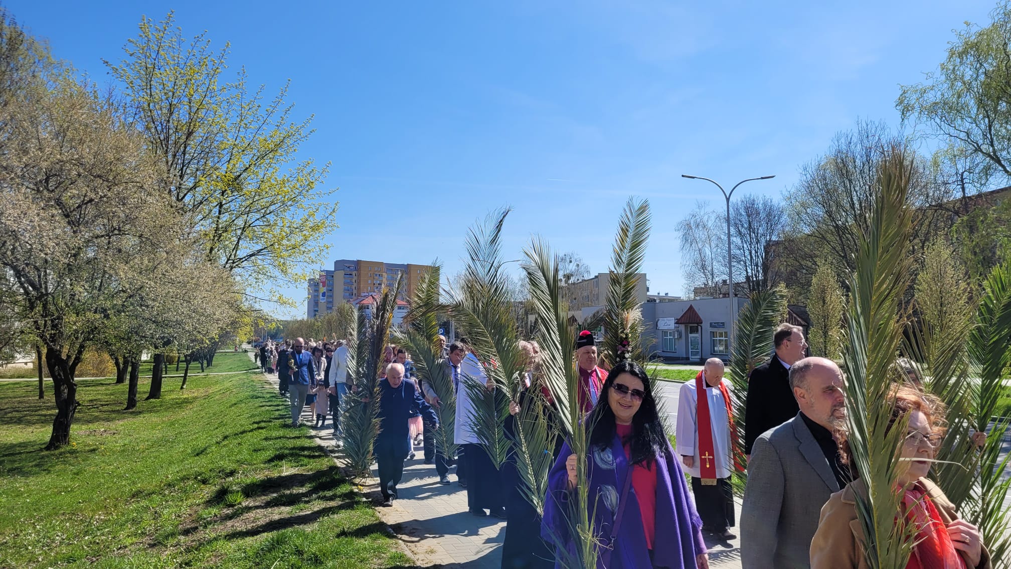 O godzinie 11:10, przy figurze Chrystusa Zmartwychwstałego, rozpoczęła się uroczysta procesja z palmami, prowadząca do kościoła parafialnego. Wierni, niosąc palmy i śpiewając pieśni liturgiczne, wspominali triumfalny wjazd Jezusa do Jerozolimy.
