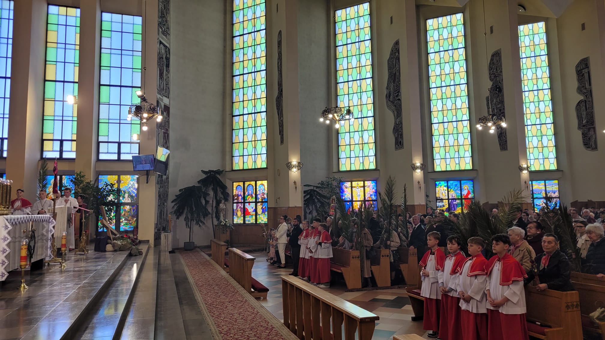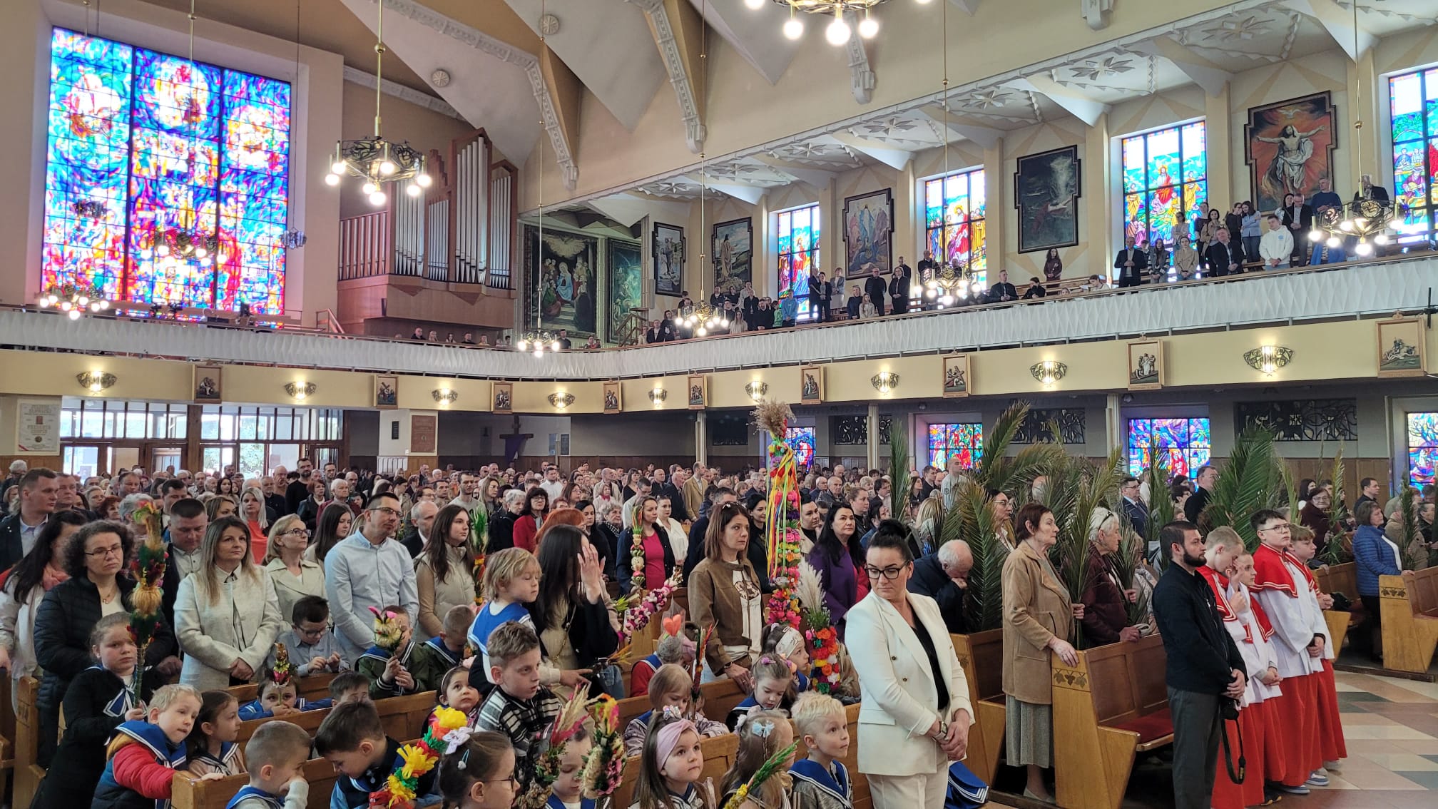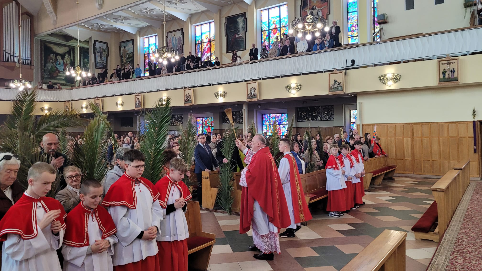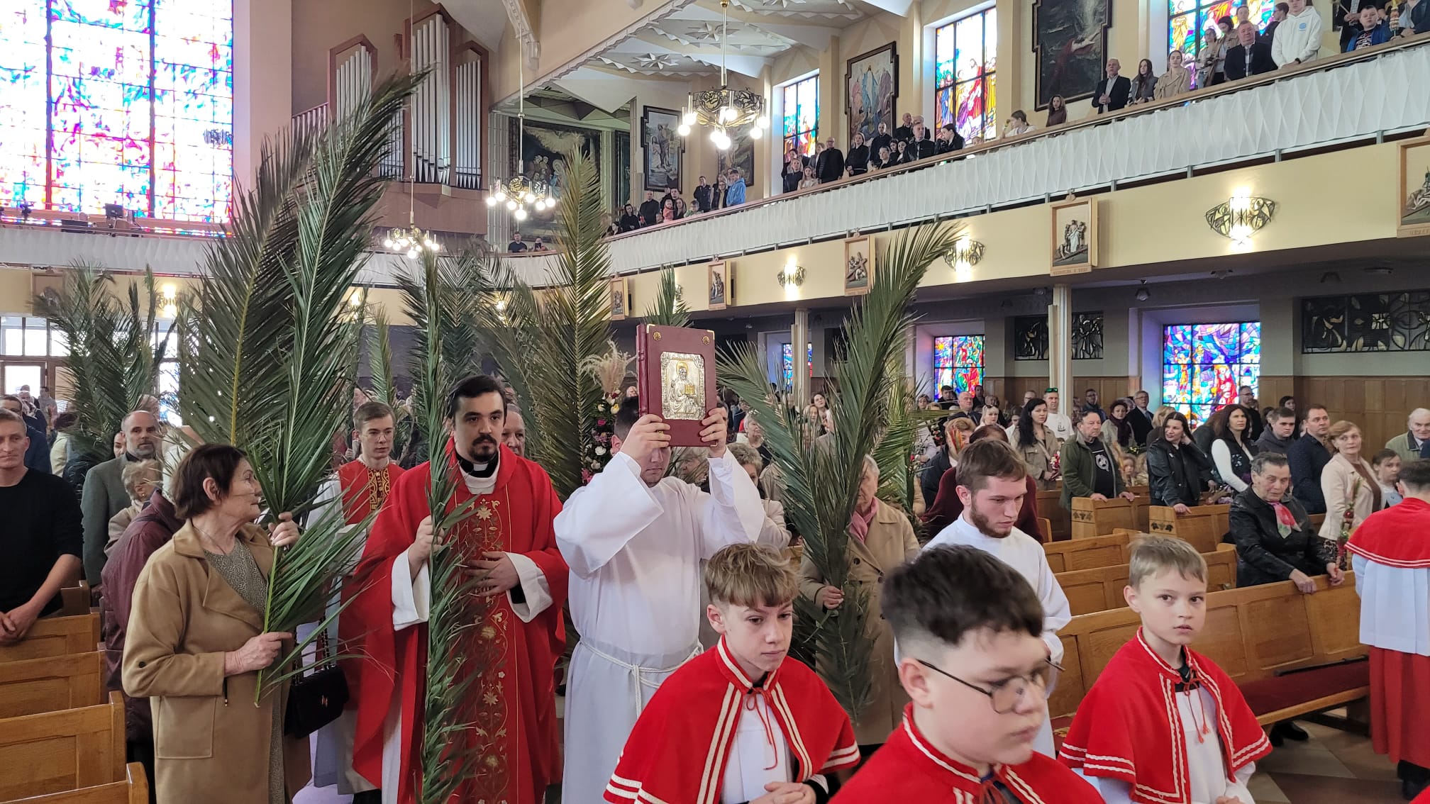W niedzielę, 13 kwietnia 2025 roku, w parafii odbyły się uroczystości Niedzieli Palmowej, które zgromadziły licznie wiernych, w tym dzieci przygotowujące się do I Komunii Świętej wraz z rodzicami, wspólnoty parafialne oraz duchowieństwo.