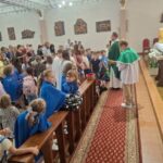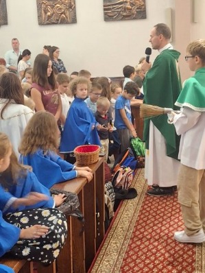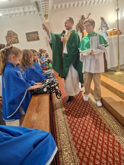 W niedzielę, 21 września, podczas Mszy Świętej o godzinie 11:15, w naszym kościele odbyło się poświęcenie tornistrów i przyborów szkolnych. Uczniowie, szczególnie ci, którzy po raz pierwszy przekroczyli próg szkoły, przynieśli ze sobą plecaki, aby przez modlitwę i pokropienie wodą święconą powierzyć Bogu swój wysiłek i pracę. W tym roku obrzędu poświęcenia dokonał ks. Adrian Kalek, który skierował do dzieci i ich rodziców ciepłe słowa zachęty do sumiennej nauki i życia blisko Pana Boga. Był to radosny moment dla całej wspólnoty parafialnej, która modlitwą otoczyła najmłodszych na starcie ich szkolnej drogi.
