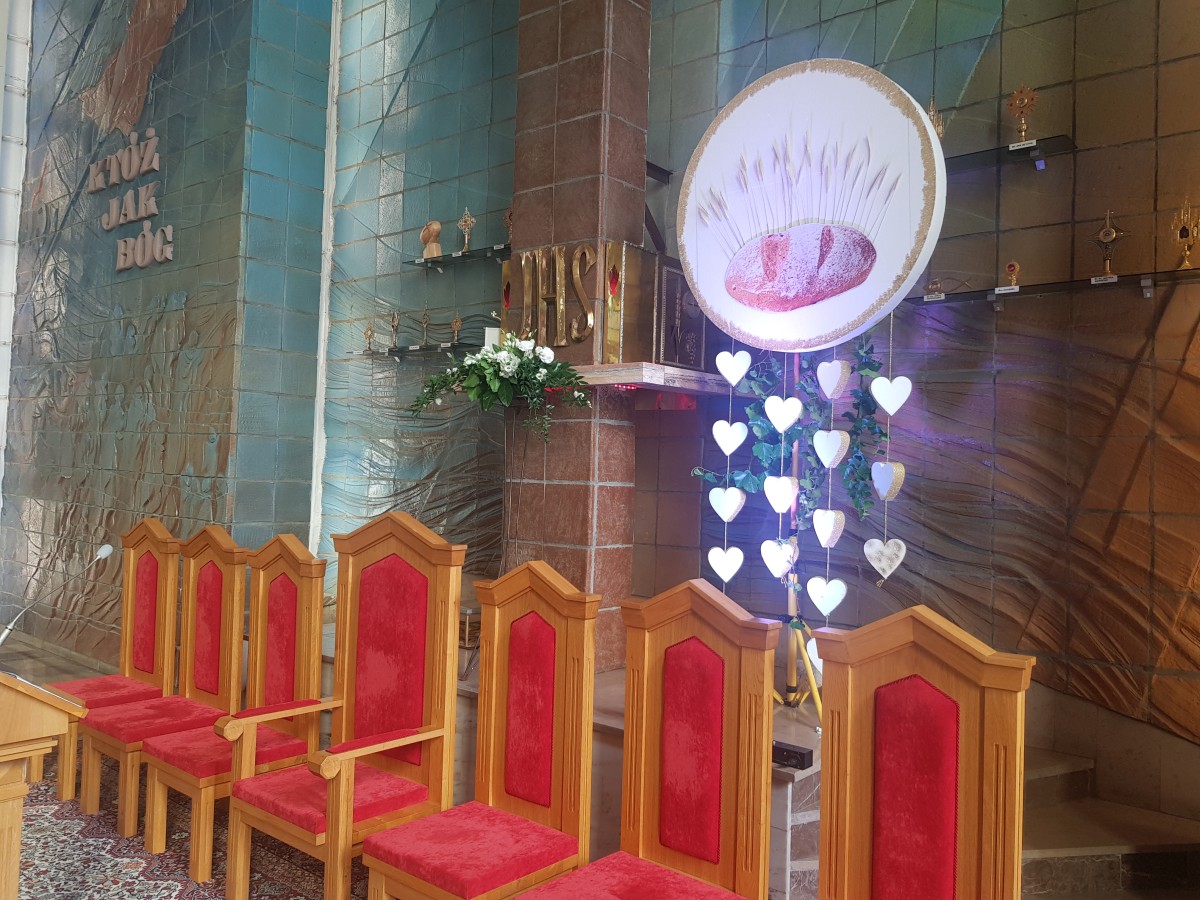 AktualnościDekoracje Dekoracja na uroczystość przyjęcia pierwszej Komunii Świętej 2021 r. Ten tekst przeczytasz w mniej niż 1 min. Ks. Maciej Charabin 20 czerwca, 2021 325 Aktualizacja: niedziela, 20 czerwca 2021, 23: 00 FacebookXWhatsAppEmail Nowości Aktualności Ogłoszenia duszpasterskie – 29.03.2026 r. – VI Niedziela Wielkiego Postu Aktualności Rozpoczęliśmy Wielki Tydzień – Niedziela Palmowa 2026 r. Aktualności Katecheza Niedzielna – Jak interpretować tło wizerunku Jezusa Miłosiernego? Aktualności Zakończenie wielkopostnych rekolekcji w naszej parafii A.D. 2026 Aktualności Triduum Paschalne i jego znaczenie Aktualności Rozpoczęliśmy Wielki Tydzień – Niedziela Palmowa 2026 r. Autor Ks. Maciej CharabinWikariusz Zapraszamy do obejrzenia galerii zdjęć. Podziel się FacebookXWhatsAppEmail Poprzedni artykułOgłoszenia duszpasterskie – 20.06.2021 r. – XII Niedziela ZwykłaNastępny artykułLudzkie sądy - Uroczysta Nowenna - Kalendarium Polecamy Aktualności Msze święte w Adwencie Aktualności Gorzkie żale przybywajcie… – Bóg nas zaprasza Aktualności Godzina Łaski na Serbinowie Aktualności Plan Rekolekcji Wielkopostnych 2021 r.