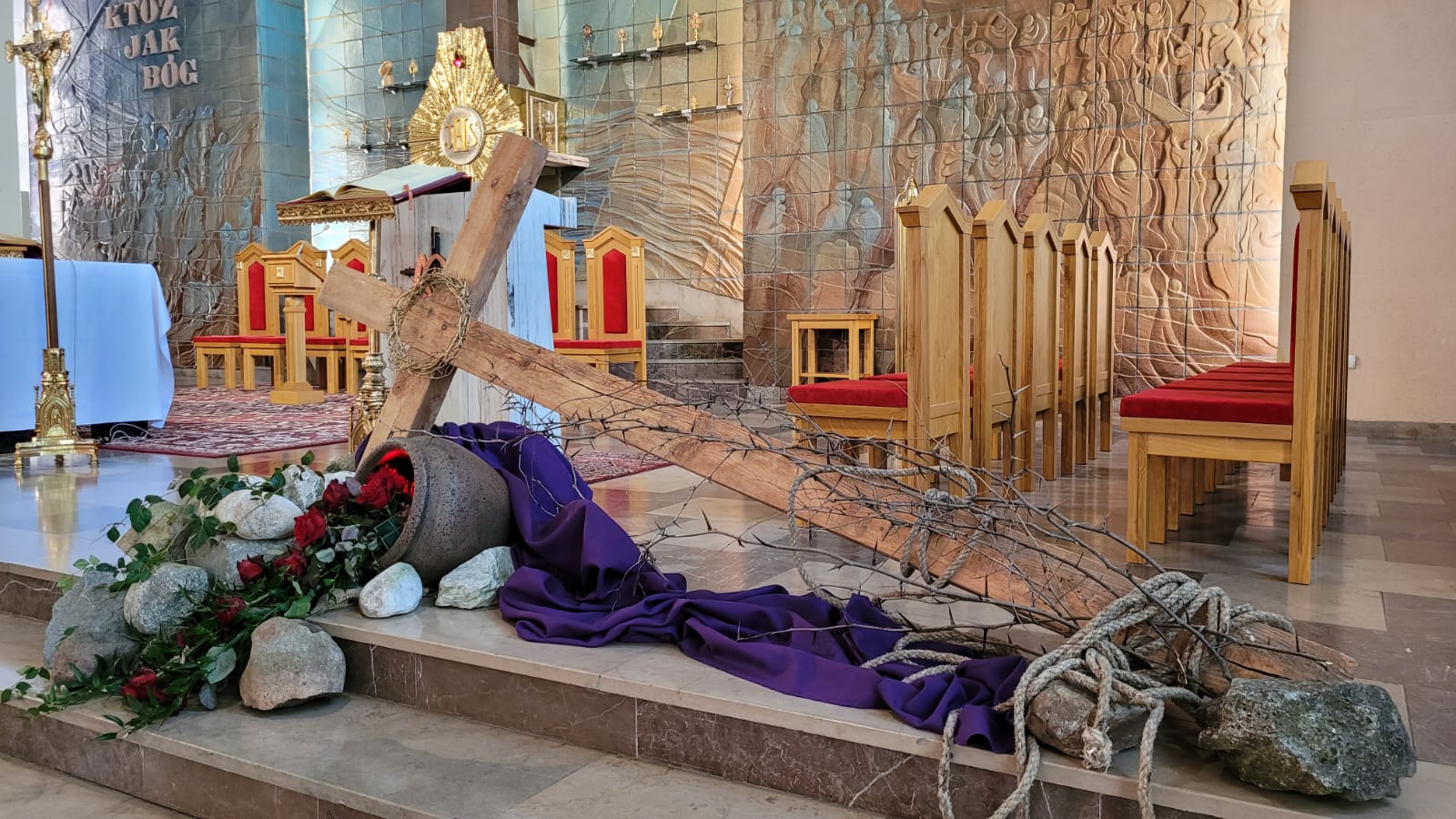 Dekoracje te nie tylko upiększają wnętrze kościoła, ale także przypominają nam o istocie tego okresu liturgicznego. Krzyż, centralny element aranżacji, symbolizuje ofiarę Jezusa, a otaczające go elementy, takie jak kamienie i kwiaty, nawiązują do Drogi Krzyżowej i cierpienia. Fioletowe tkaniny, zasłaniające niektóre elementy, zgodnie z tradycją, pomagają wiernym w głębszym przeżywaniu pokuty i przygotowania do Wielkanocy.
