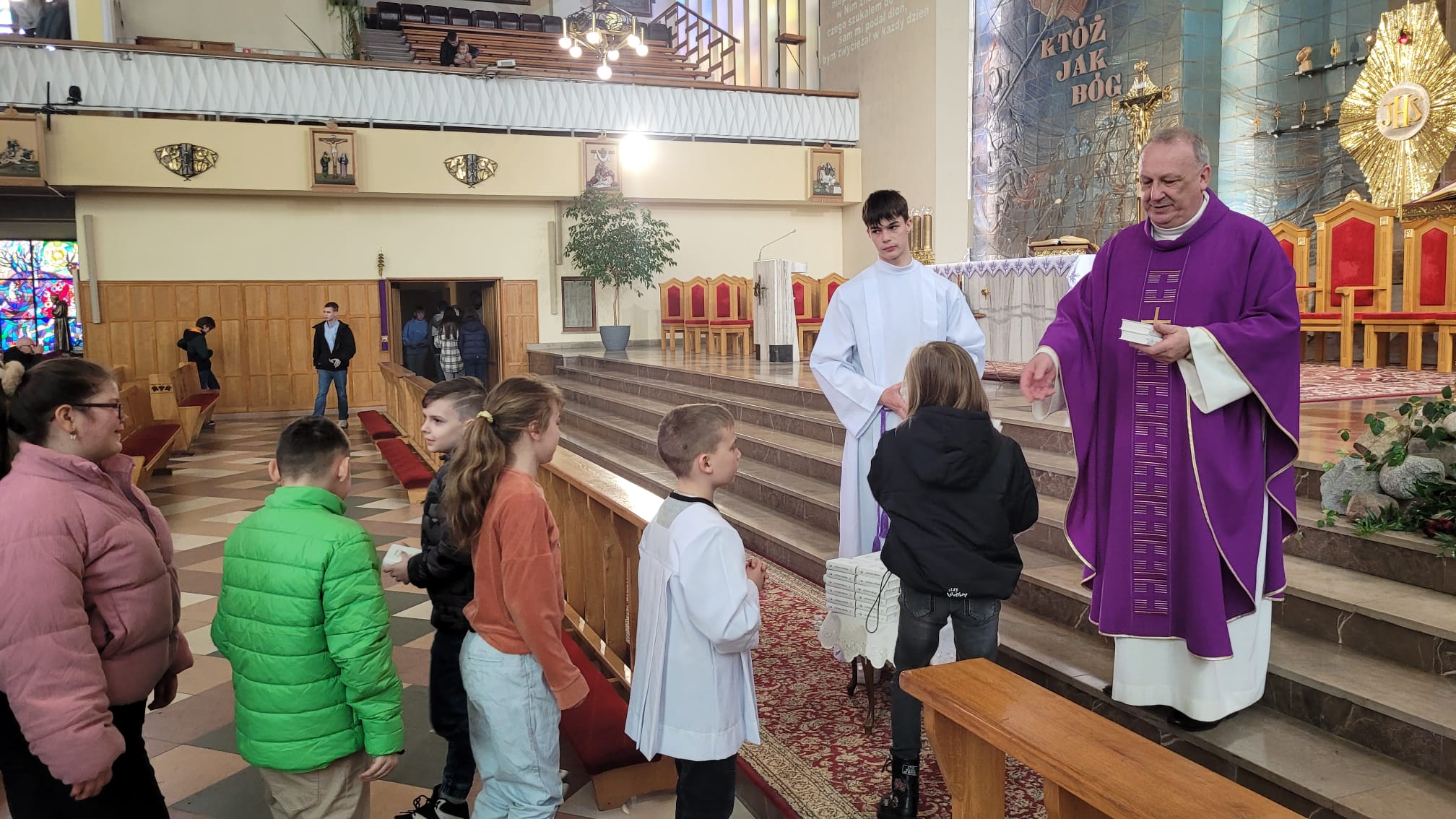 9 marca 2025 roku, w naszej parafii odbył się uroczysty obrzęd poświęcenia książeczek do nabożeństwa dla dzieci przygotowujących się do Pierwszej Komunii Świętej. Pani Barbara Kubrak, nasza katechetka, z wielkim zaangażowaniem przygotowała dzieci do tego wyjątkowego wydarzenia.