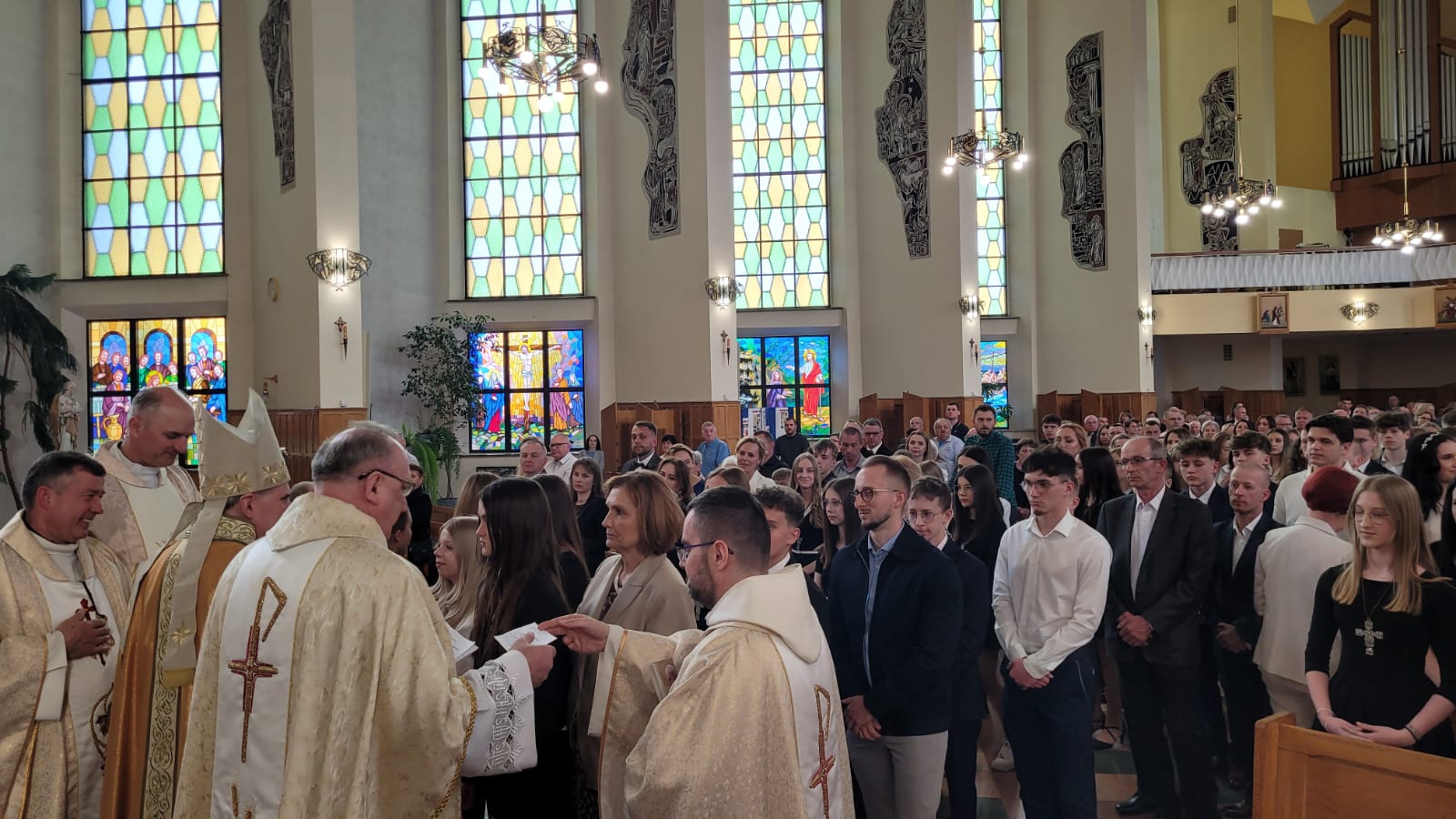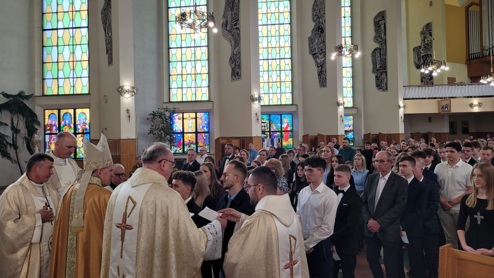Liturgia przebiegła w atmosferze godnej i uroczystej. Całość wydarzenia została starannie przygotowana zarówno pod względem liturgicznym, jak i organizacyjnym. Młodzież aktywnie włączyła się w przebieg Mszy Świętej poprzez czytania, modlitwę wiernych i procesję z darami. Obecność rodzin, świadków oraz wspólnoty parafialnej nadała uroczystości wymiar wspólnotowego święta, a piękna oprawa muzyczna podkreśliła duchowy charakter tego ważnego momentu w życiu młodych ludzi.