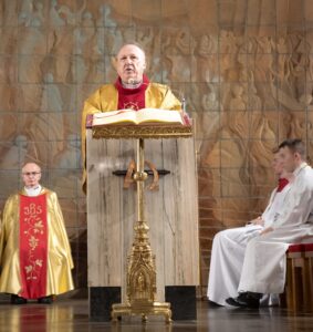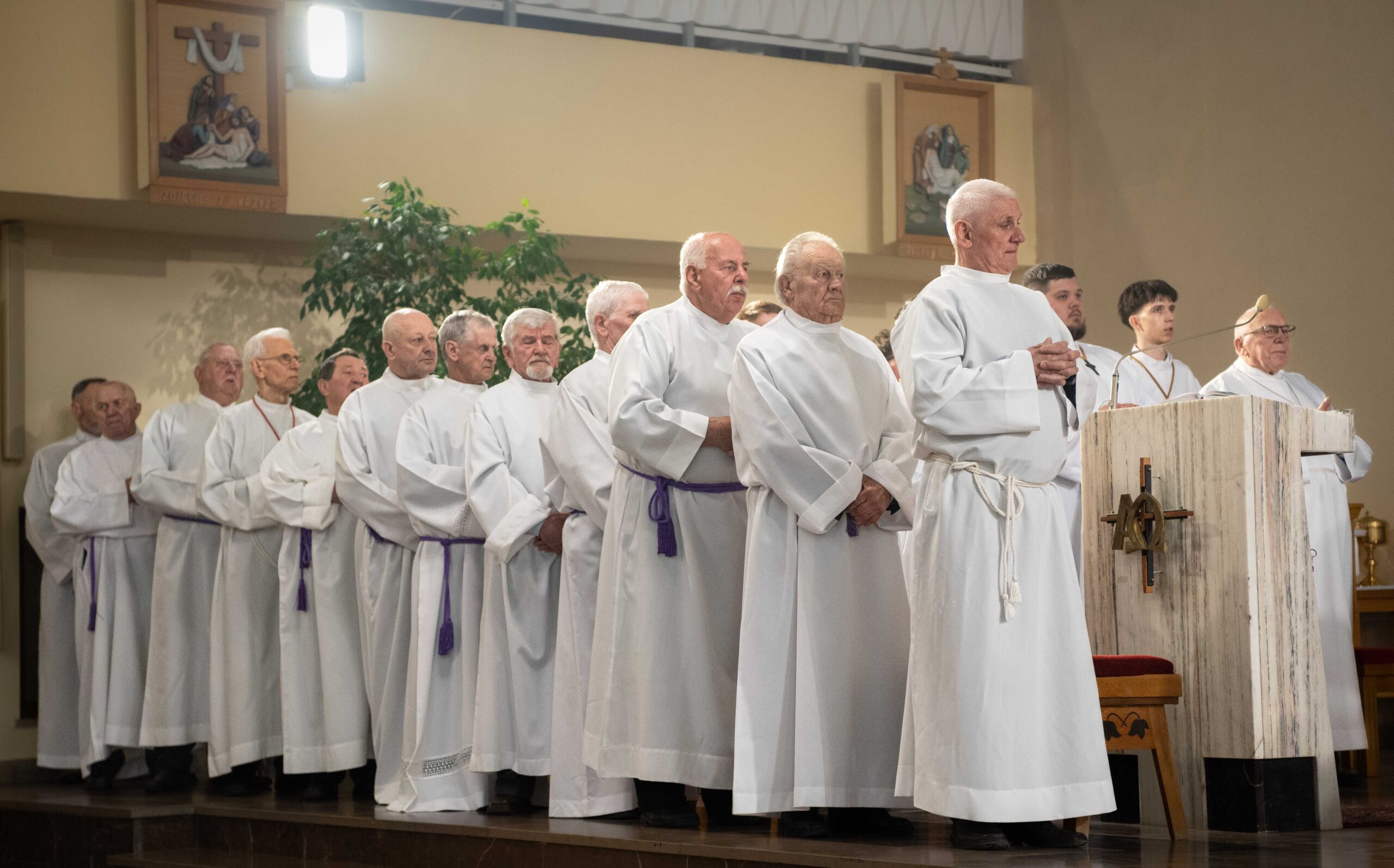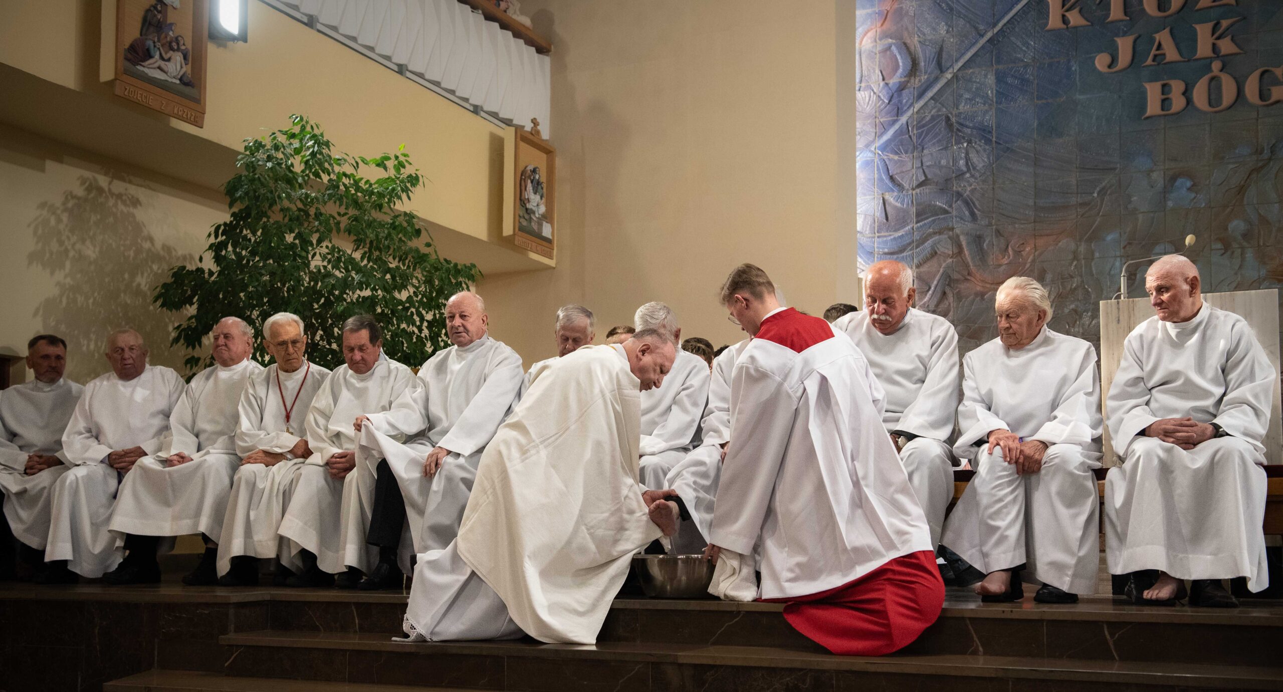 W dalszej części rozważań zwrócono uwagę na gest pokory z Wieczernika oraz poproszono wiernych o modlitewne wsparcie dla duchownych. „Musimy jednak rozumieć jeszcze jeden ważny gest, jakiego dokonał Jezus w Wieczerniku podczas Ostatniej Wieczerzy. Jest to gest obmycia nóg. Jezus obmywa nogi, aby powiedzieć, że przez krzyż staje się niewolnikiem człowieka. To niepojęty gest pokory i miłości Boga względem człowieka. Eucharystia, którą celebrujemy dzisiaj, jest tą samą z Wieczernika, Ona ma te samą moc oczyszczająca i uzdrawiającą. (…) Módlcie się za nas kapłanów, żebyśmy zawsze jak w dniu naszych kapłańskich święceń tęsknili za Chrystusem, żebyśmy Go zawsze kochali, żebyśmy chcieli dla Niego żyć. Niech dzisiejszy, dzień dwóch sakramentów, wszystkich nas umocni i pokrzepi.”