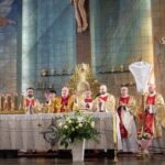 Na początku homilii Ksiądz Proboszcz przypomniał historyczne i teologiczne okoliczności ustanowienia Eucharystii. „Święte Triduum Paschalne, które rozpoczyna Msza Wieczerzy Pańskiej, jest centrum całego roku liturgicznego i czasem wyjątkowej łaski dla każdego chrześcijanina. Usłyszeliśmy, że „było to przed świętem Paschy” kiedy Jezus w Wieczerniku postanowił spożyć Ostatnią Wieczerzę. Święto Paschy, najważniejsze święto Żydowskie, było obchodzone na pamiątką wyjścia Żydów z Egiptu po 430 latach niewoli.(…) W czasie Ostatniej Wieczerzy, zamiast baranka, Jezus składa w ofierze siebie samego. On sam „jest Barankiem Bożym, który gładzi grzechy świata”. Ten dar jest tak wielki, że Jezus chciał, abyśmy o nim nie zapomnieli i abyśmy go ponawiali. Dlatego zawarł go w Eucharystii i polecił uczniom, aby Eucharystia była czyniona na Jego pamiątkę.”