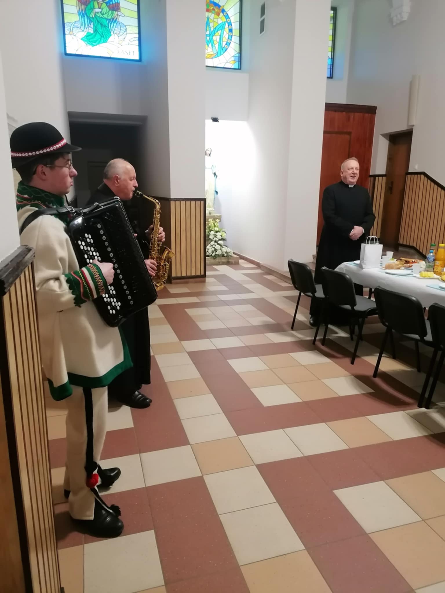 Podczas spotkania śpiewano kolędy oraz pieśni religijne, przy akompaniamencie akordeonu i saksofonu. Wspólne śpiewanie stworzyło ciepłą i radosną atmosferę.