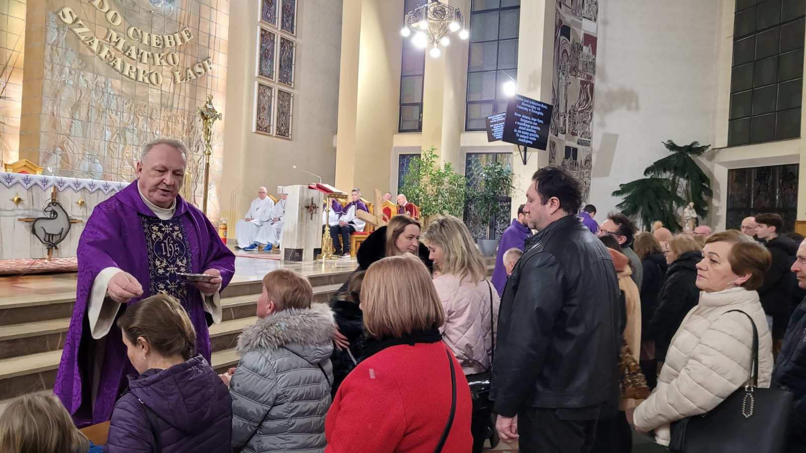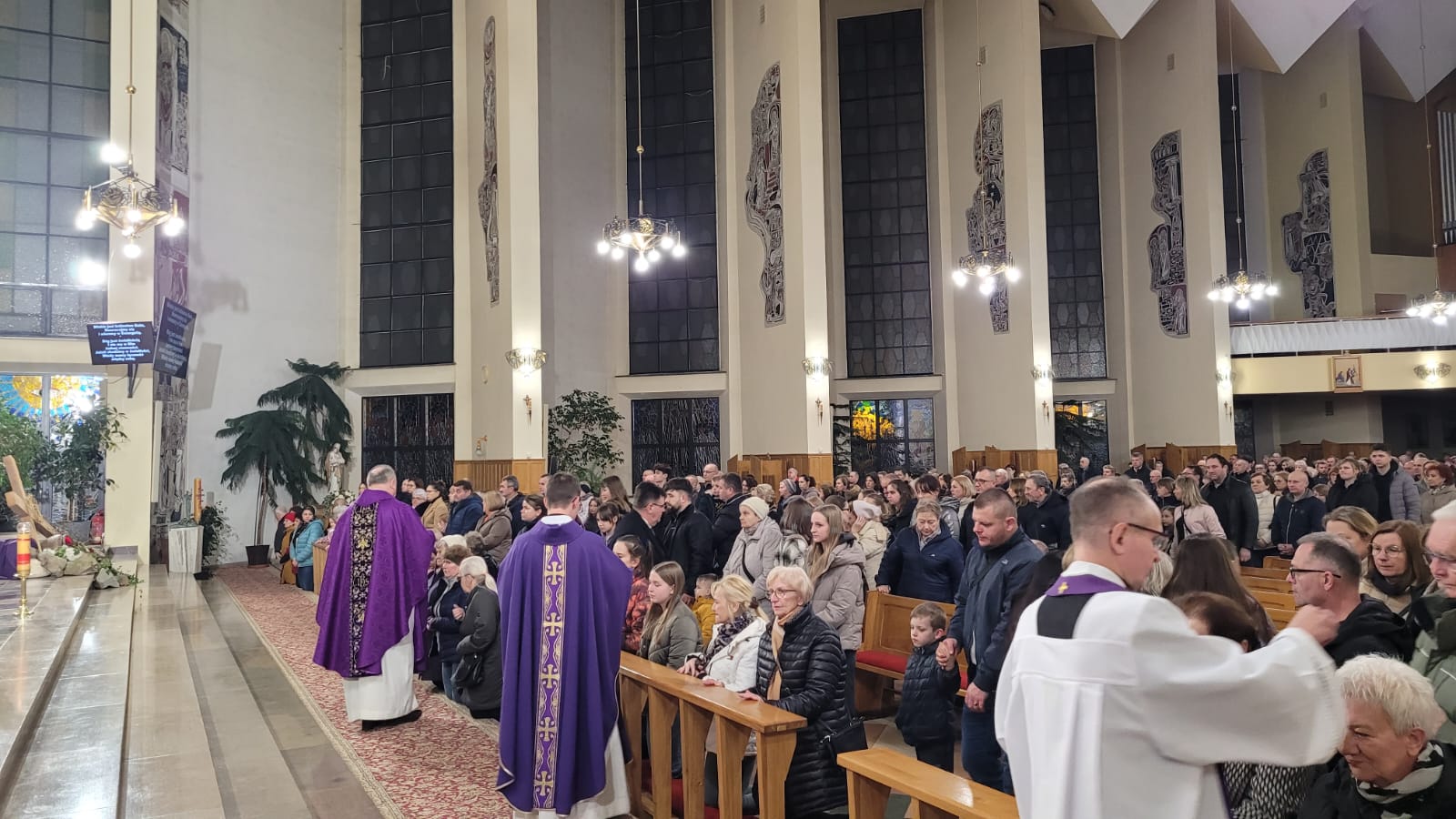 Podczas Mszy Świętej wieczornej wierni wysłuchali homilii wygłoszonej przez Ks. prał. Jana Biedronia. Kaznodzieja podkreślił, że popiół na czole to jedynie znak zewnętrzny, który powinien prowadzić do prawdziwej przemiany serca. Zachęcał, by Wielki Post stał się czasem konkretnych czynów: dzielenia się z bliźnimi poprzez jałmużnę, porządkowania życia przez post i budowania relacji z Bogiem dzięki modlitwie. – Często zastanawiamy się nad fenomenem bardzo licznej obecności wiernych na Mszy św. w Środę Popielcową. Jest jednak w tym zjawisku jakiś bardzo wyraźny symptom naturalnego pragnienia, które nosi w sobie każdy człowiek: jest nim poczucie niewystarczalności naszego dotychczasowego stylu życia i chęć poprawy, która wyraża się w decyzji rozpoczęcia drogi pokutnej, określanej przez Kościół jako Wielki Post. (…) Zewnętrzny gest posypania głowy popiołem tylko symbolizuje to, co ma się dokonać wewnątrz człowieka. Po to jest właśnie post, żeby zyskać wolność i otworzyć na nowość zjednoczenia z Jezusem Zmartwychwstałym.