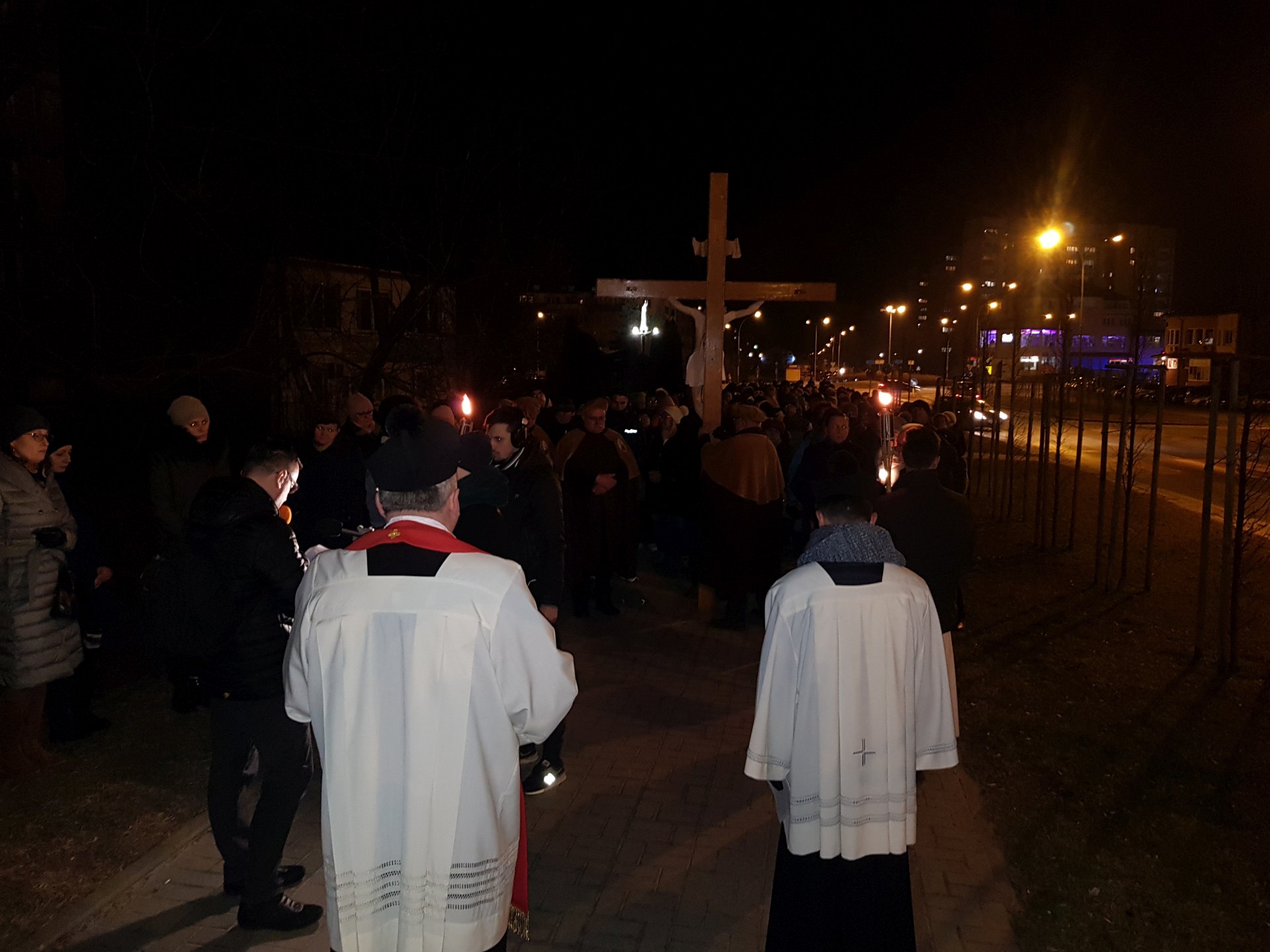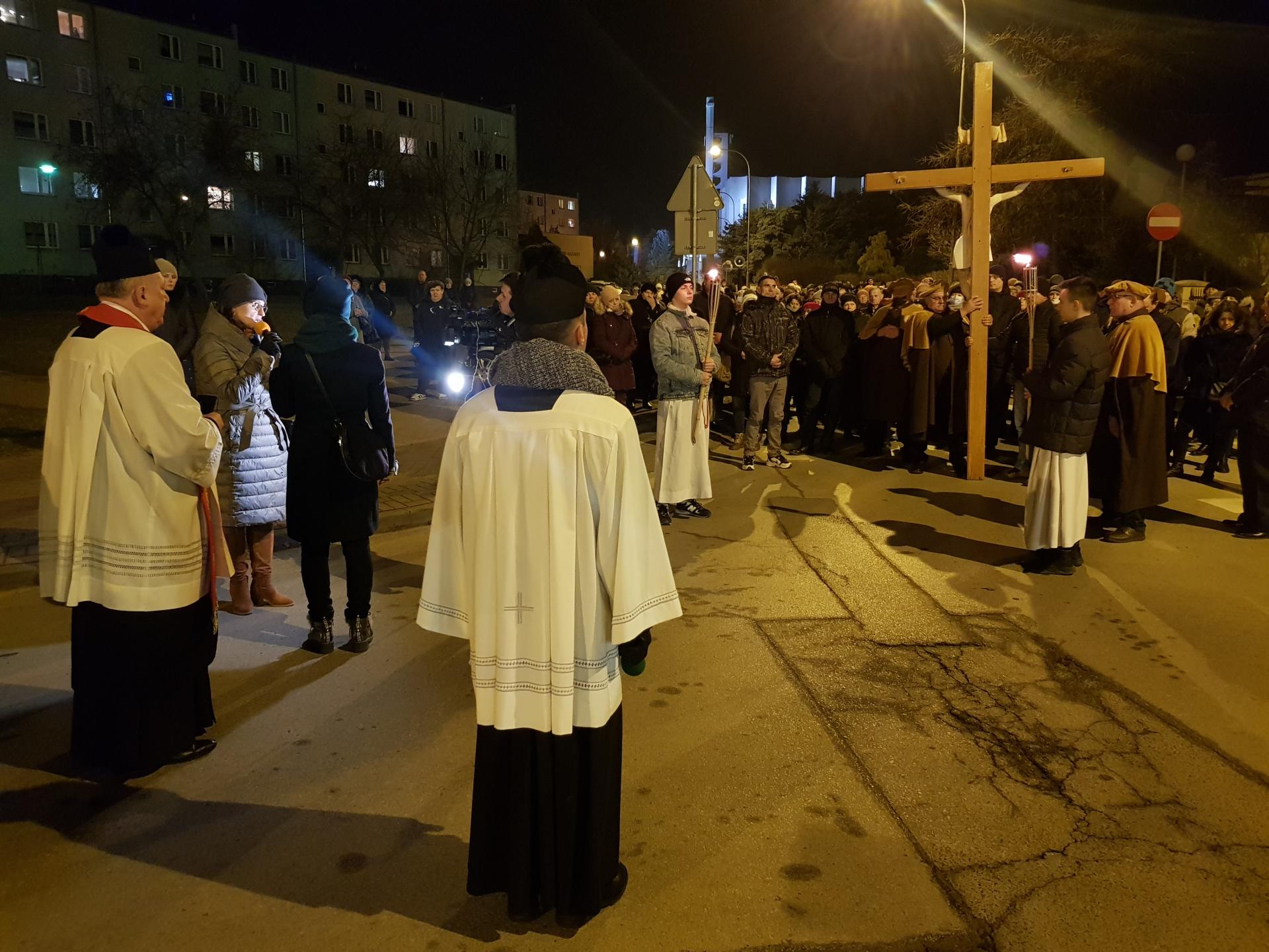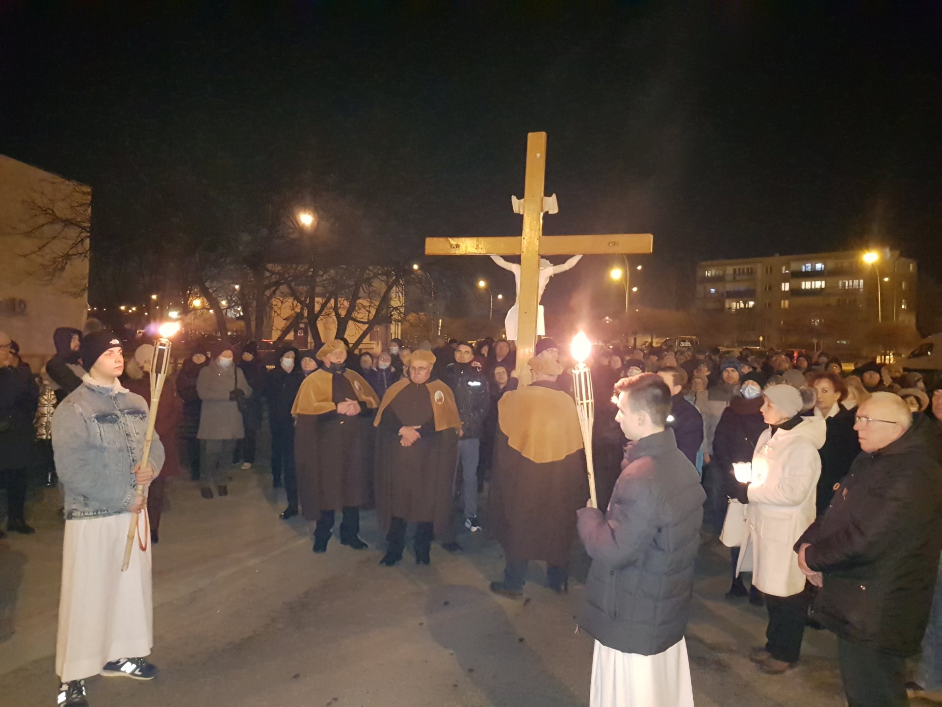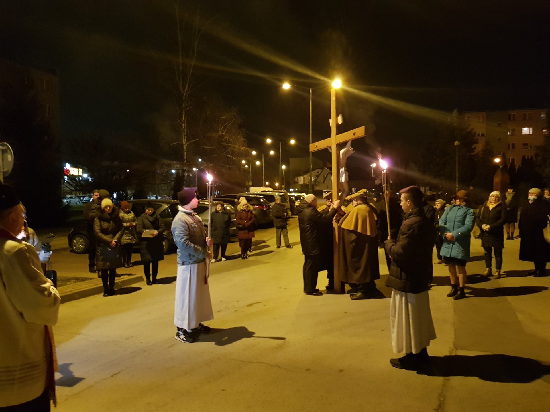 W piątek, 4. marca 2022 r. w naszej parafii odbyła się Stacyjna Droga Krzyżowa ulicami osiedla do figury Bożego Serca. Nabożeństwo poprzedzone Mszą Świętą o godz. 18.00 poprowadził ks. prał. Jan Biedroń – proboszcz parafii. Rozważania Męki Pańskiej przy poszczególnych stacjach Drogi Krzyżowej przygotował Klub Inteligencji Katolickiej. Ta szczególna forma modlitwy była kierowana jako przebłaganie za grzechy pijaństwa, w intencji misji oraz przeproszenie za grzechy przeciw szóstemu przykazaniu.