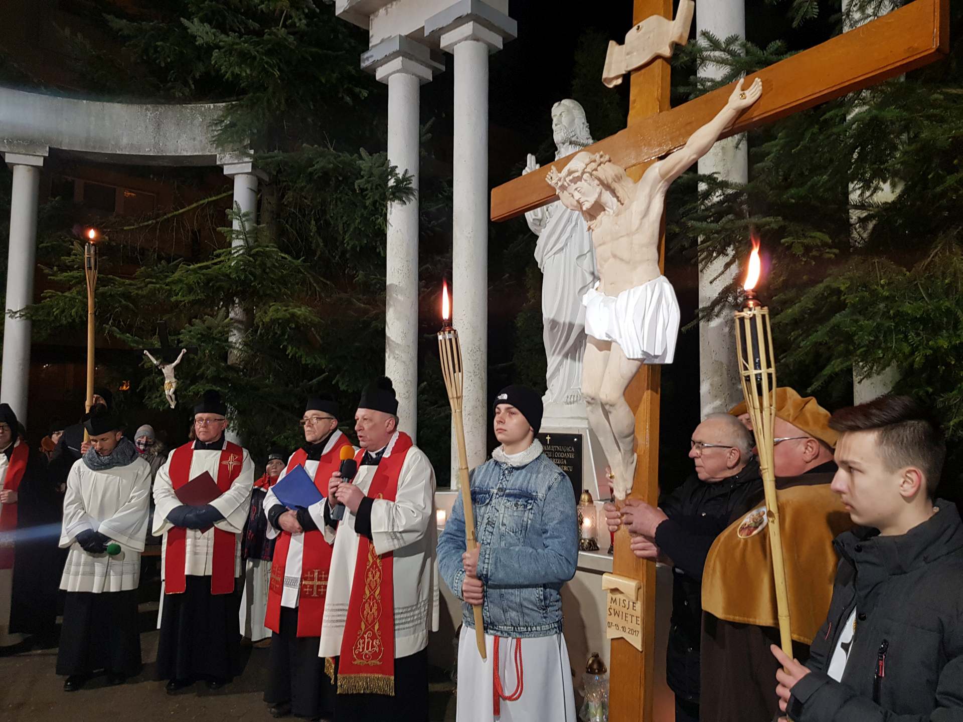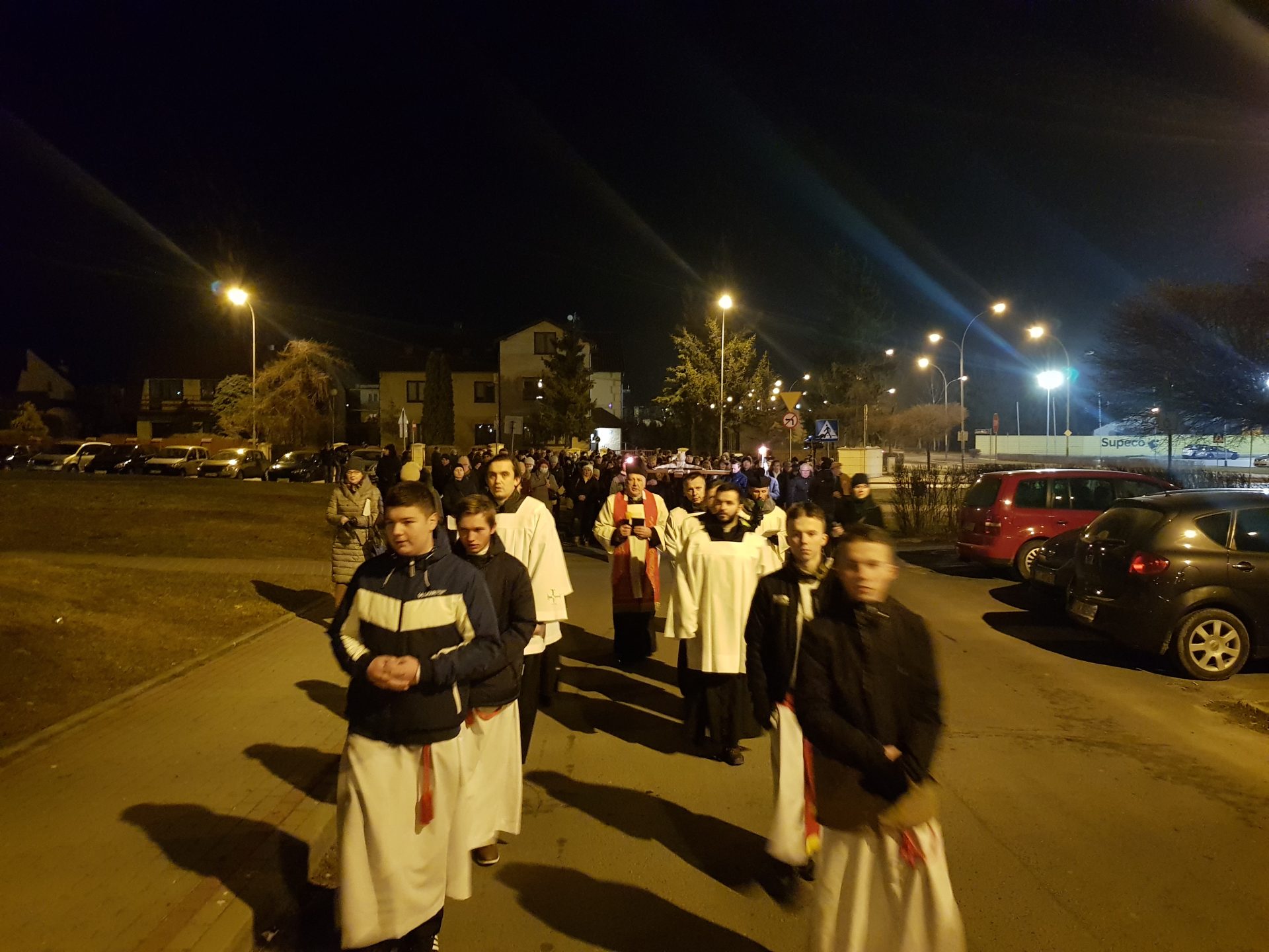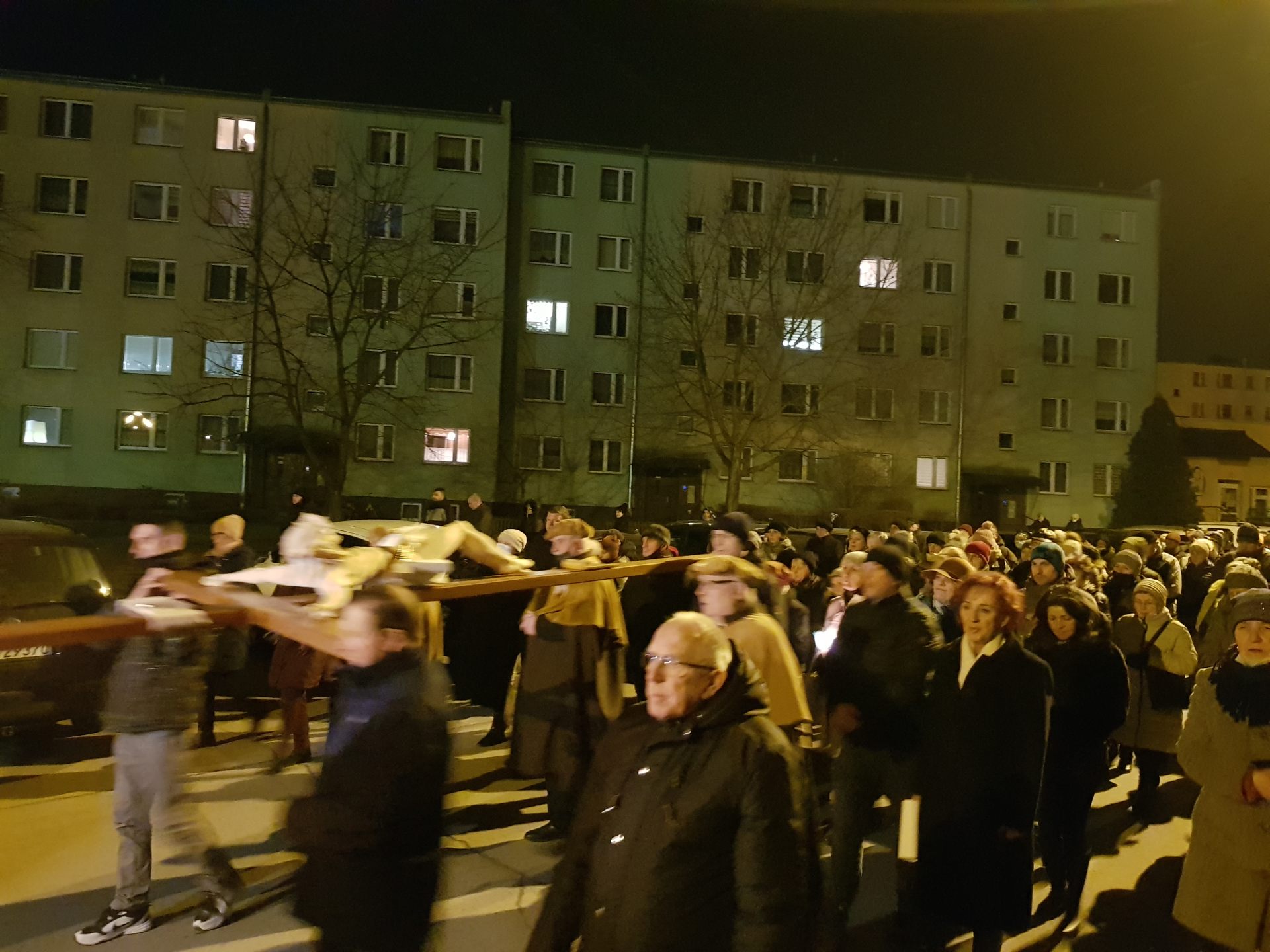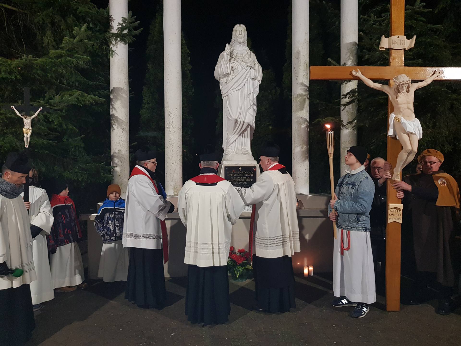 W piątek, 4. marca 2022 r. w naszej parafii odbyła się Stacyjna Droga Krzyżowa ulicami osiedla do figury Bożego Serca. Nabożeństwo poprzedzone Mszą Świętą o godz. 18.00 poprowadził ks. prał. Jan Biedroń – proboszcz parafii. Rozważania Męki Pańskiej przy poszczególnych stacjach Drogi Krzyżowej przygotował Klub Inteligencji Katolickiej. Ta szczególna forma modlitwy była kierowana jako przebłaganie za grzechy pijaństwa, w intencji misji oraz przeproszenie za grzechy przeciw szóstemu przykazaniu.