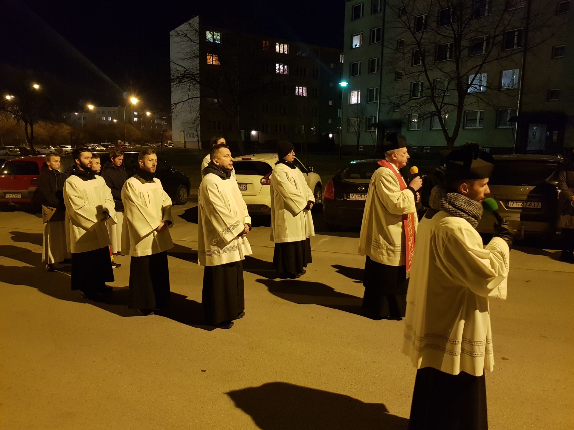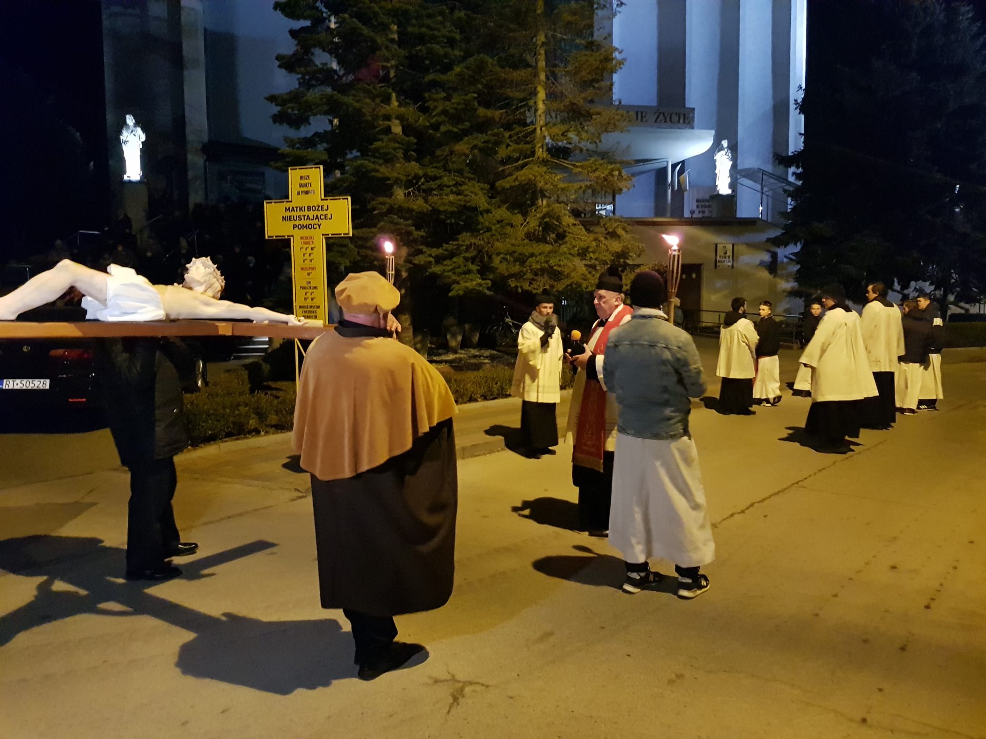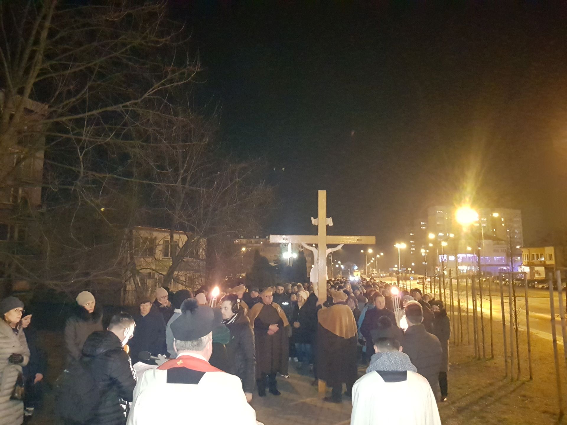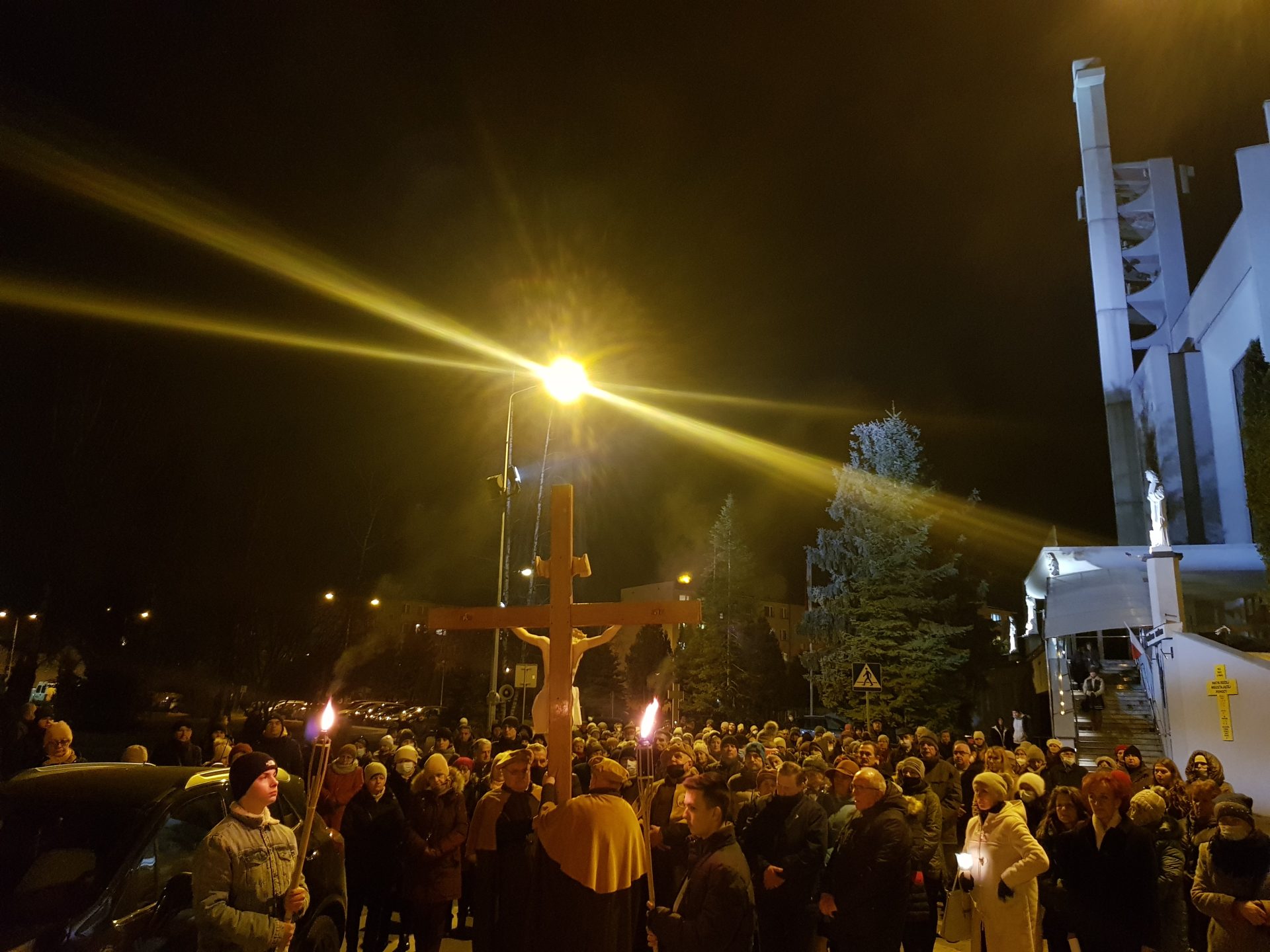 W piątek, 4. marca 2022 r. w naszej parafii odbyła się Stacyjna Droga Krzyżowa ulicami osiedla do figury Bożego Serca. Nabożeństwo poprzedzone Mszą Świętą o godz. 18.00 poprowadził ks. prał. Jan Biedroń – proboszcz parafii. Rozważania Męki Pańskiej przy poszczególnych stacjach Drogi Krzyżowej przygotował Klub Inteligencji Katolickiej. Ta szczególna forma modlitwy była kierowana jako przebłaganie za grzechy pijaństwa, w intencji misji oraz przeproszenie za grzechy przeciw szóstemu przykazaniu.