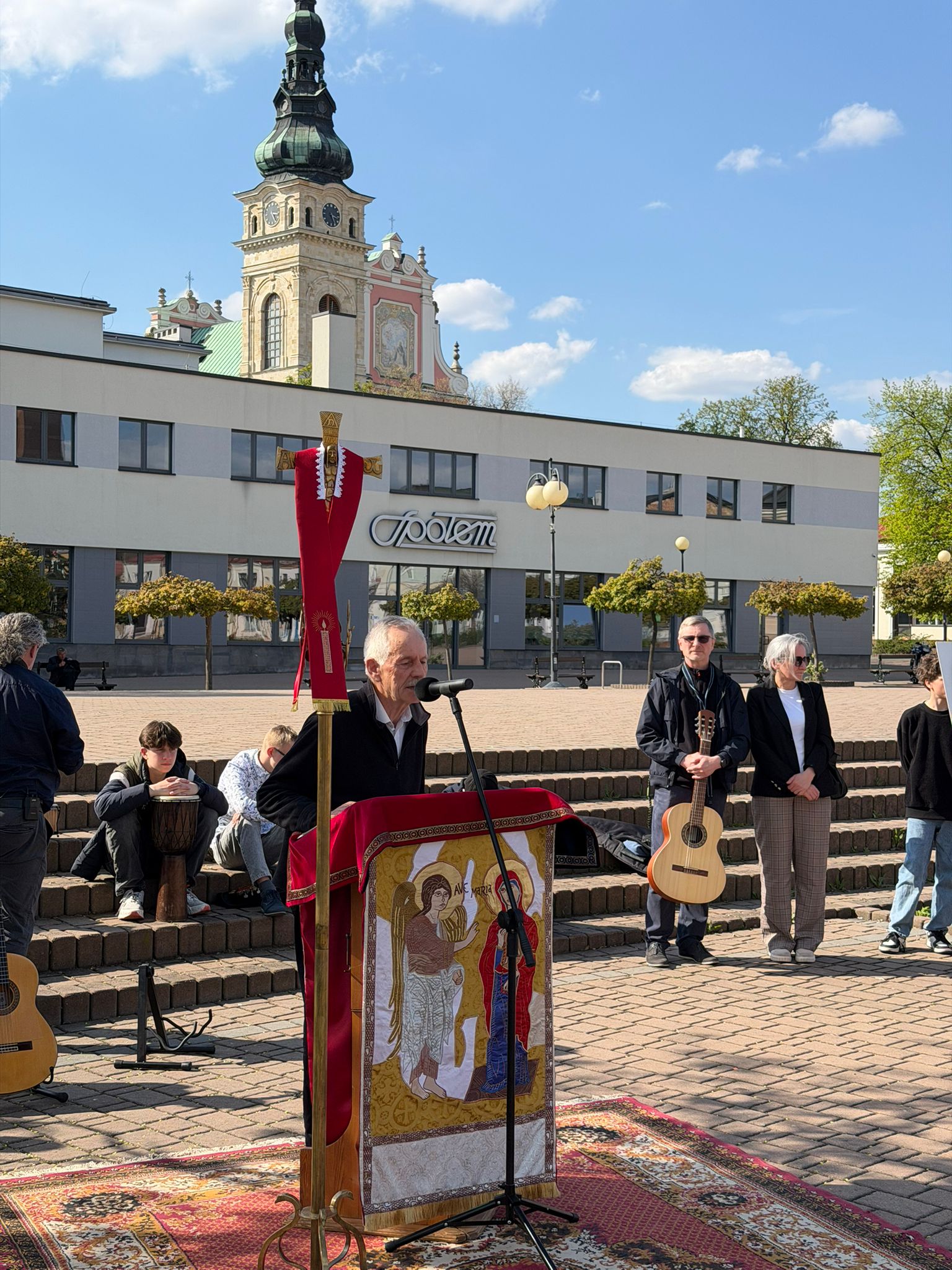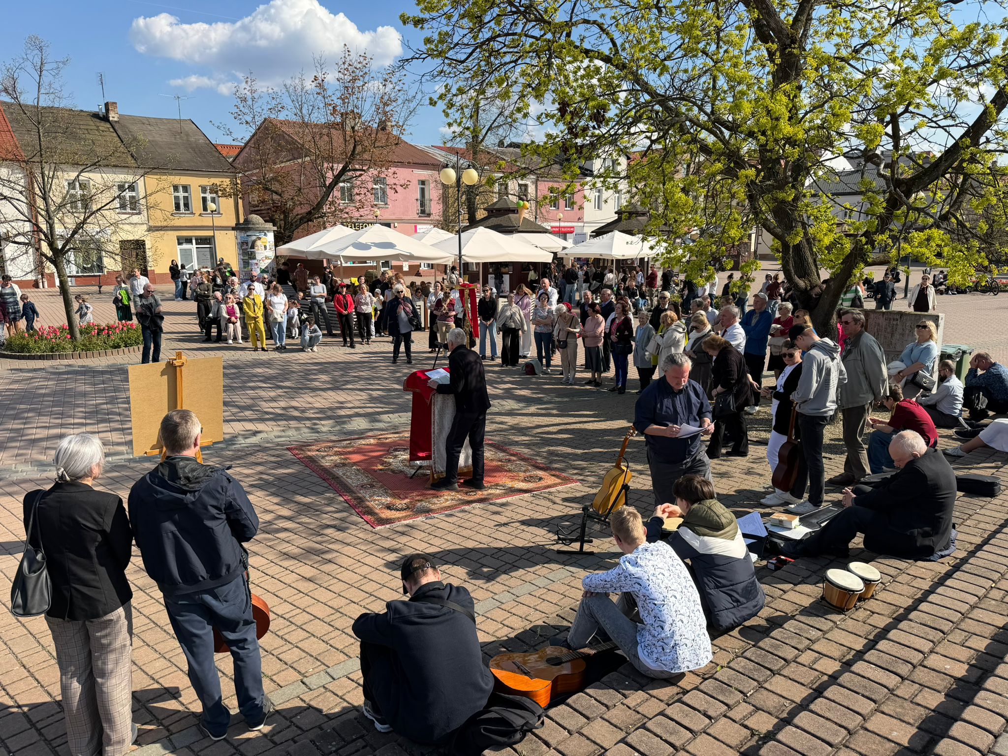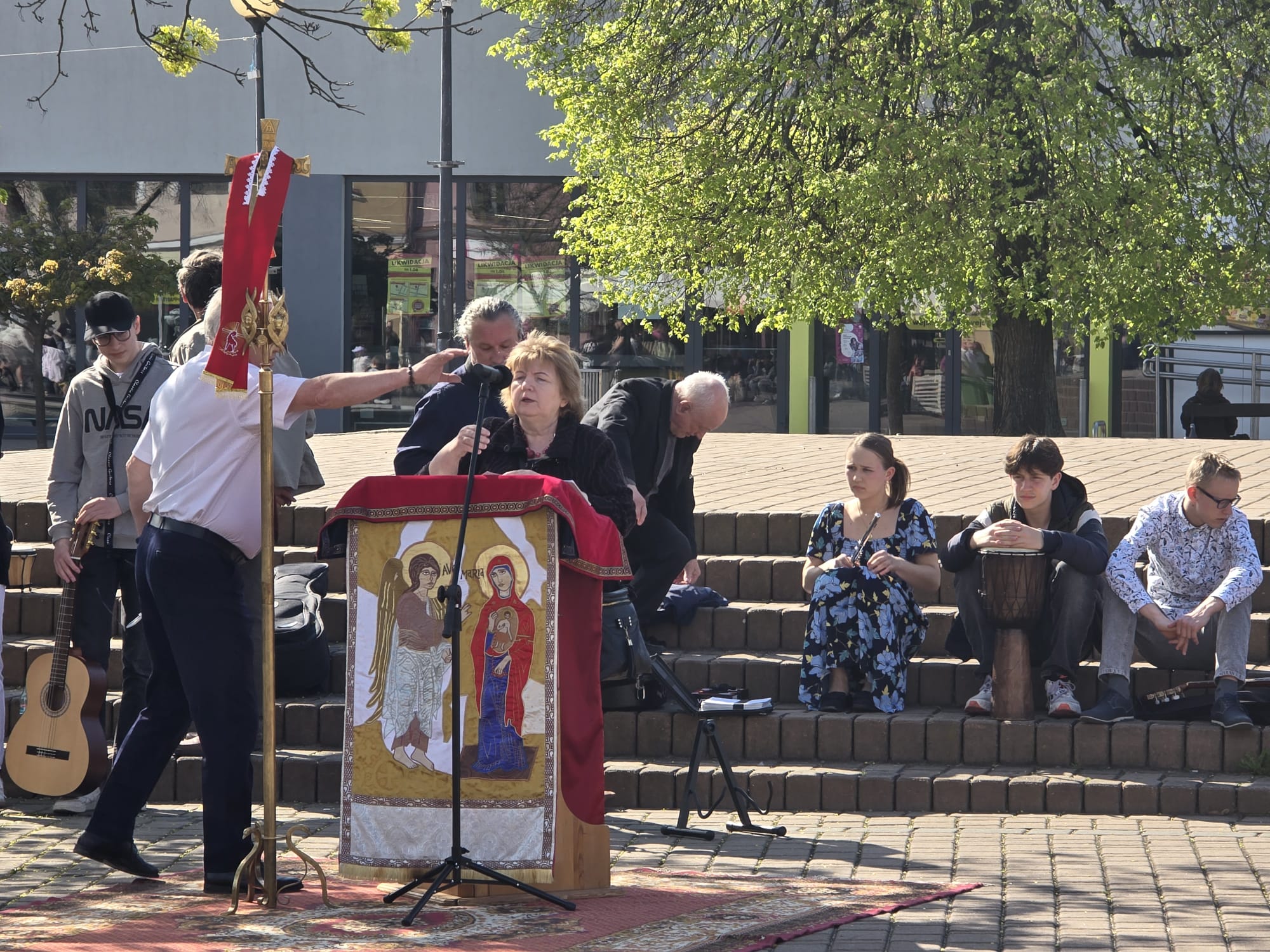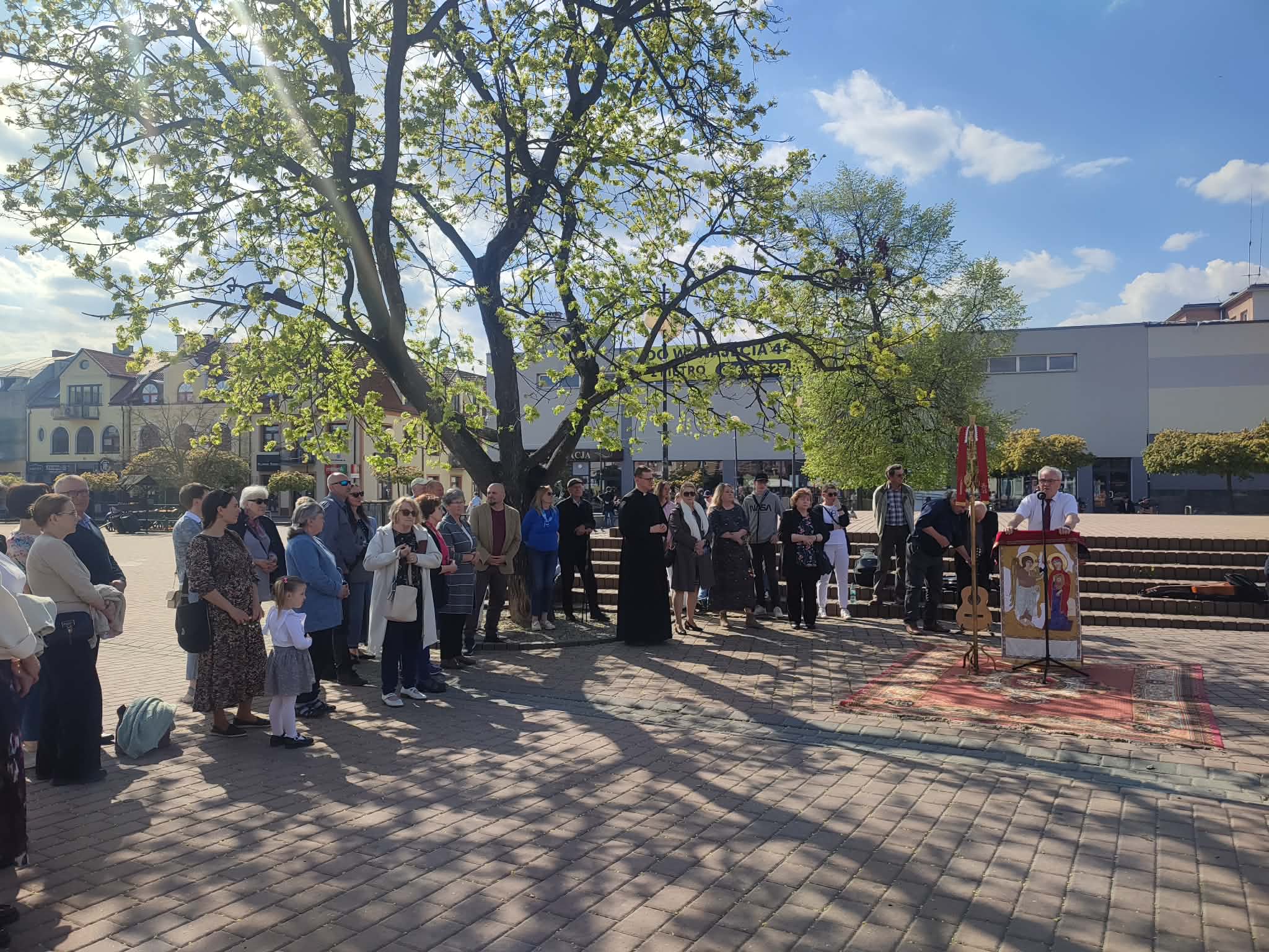 W niedzielę, 19 kwietnia 2026 roku, w przestrzeni miejskiej Tarnobrzega odbyło się spotkanie ewangelizacyjne zorganizowane w ramach ogólnoświatowej inicjatywy Wielkich Misji na placach. Wydarzenie to polega na głoszeniu słowa Bożego poza murami kościoła w okresie wielkanocnym. Za przygotowanie i poprowadzenie spotkania w naszym mieście odpowiadała wspólnota m. in. Drogi Neokatechumenalnej, która na co dzień funkcjonuje przy naszej parafii pw. Matki Bożej Nieustającej Pomocy.
