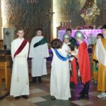 Po zakończeniu tych prezentacji, diakon Przemysław Kotuła wyniósł Najświętszy Sakrament do adoracji. Całość wieczoru uwielbienia została przygotowana przez ks. Adriana Kalka wraz z Liturgiczną Służbą Ołtarza. Oprawę muzyczną wydarzenia poprowadziła schola, a w śpiew włączyli się również księża naszej parafii: ks. Andrzej Cag, ks. Krzysztof Mikulski oraz ks. Rafał Choda.
