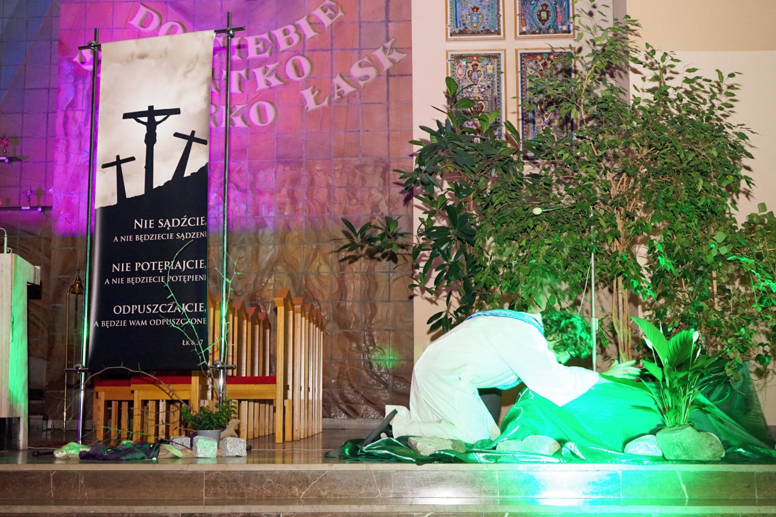W sobotę, 21 marca 2026 r., w parafii pw. Matki Bożej Nieustającej Pomocy w Tarnobrzegu odbył się wielkopostny wieczór uwielbienia, którego tematem przewodnim była modlitwa. Spotkanie zgromadziło parafian, duszpasterzy oraz służbę liturgiczną, aby wspólnie przejść przez kolejne przykłady rozmowy z Bogiem, czerpiąc wzór z kart Ewangelii oraz życia świętych.