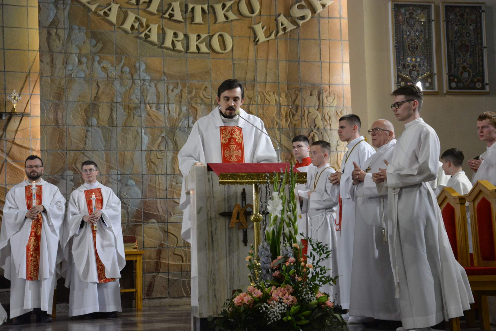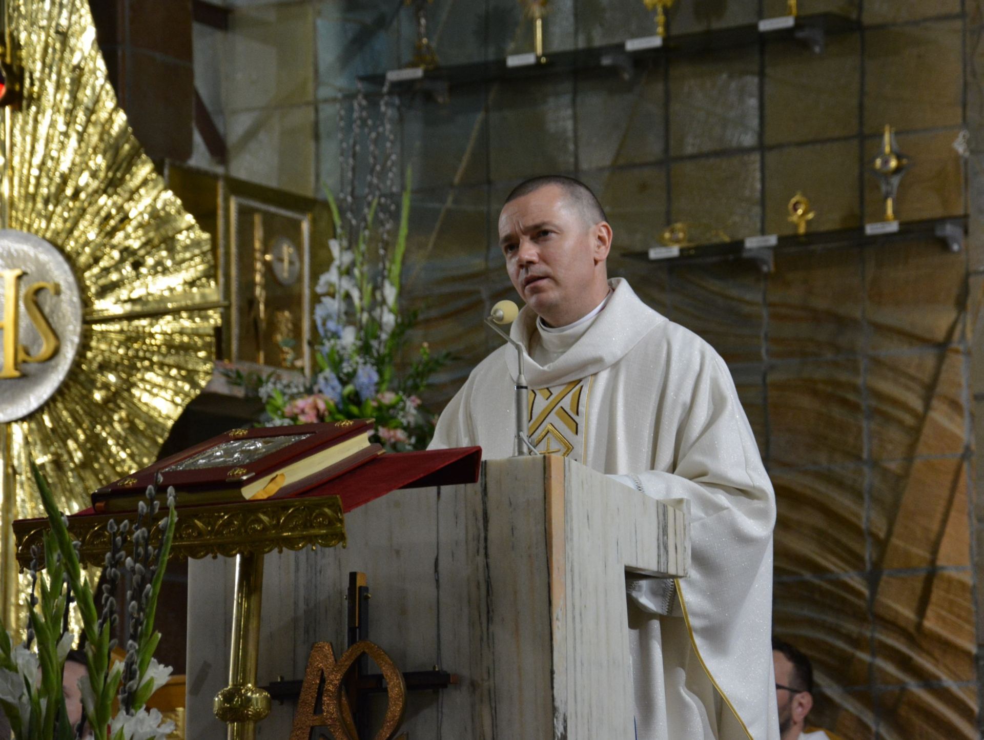 Liturgii przewodniczył Ks. prał. Krzysztof Cisek, pracownik Dykasterii Nauki Wiary w Kurii Rzymskiej. W wygłoszonej homilii zatrzymał się nad pytaniem: czy naprawdę spotkaliśmy Zmartwychwstałego Chrystusa w swoim życiu? – „Umrzeć za życia, z własnej woli oddać Bogu wszystko, dosłownie wszystko, można tylko wtedy, kiedy się Go spotkało, kiedy osobiście doświadczyło się Jego obecności. Jest to kolejnym dowodem na to, że Zmartwychwstały jest, że żyje i że ciągle ukazuje się ludziom. Ale niestety nie wszyscy ochrzczeni Go spotkali. Dla wielu ludzi prawda o Zmartwychwstaniu Jezusa, która w żaden sposób nie przekłada się na codzienne życie, pozostaje tylko teorią i tradycją.”