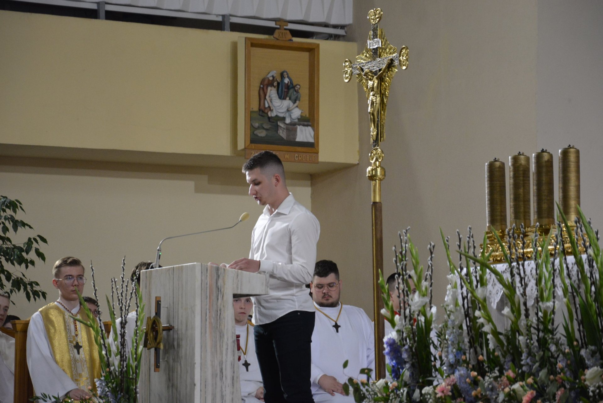 Następnie kaznodzieja podkreślił, że wielu ochrzczonych nie rozpoznaje Chrystusa w sakramentach i słowie, dlatego ich wiara pozostaje powierzchowna. – „Nie rozpoznają Go w łamaniu chleba – w Eucharystii, nie rozpoznają Go w sakramencie pokuty, gdzie ciągle przebacza, ciągle odpuszcza grzechy, gdzie daje człowiekowi nowe życie. Nie słyszą Jego głosu w Ewangelii. Nie wszyscy ochrzczeni spotkali Zmartwychwstałego, dlatego wiara często sprowadza się jedynie do tradycji, do folkloru, do konkursu palm, do święconki, do okrągłych życzeń i do świątecznej wizyty w kościele. Można przeżyć całe życie, a Zmartwychwstałego nigdy nie spotkać. Można być ochrzczonym i można być naznaczonym Duchem Świętym w sakramencie bierzmowania, ale Jezusa Zmartwychwstałego nie spotkać i żyć tak, jakby On nie zmartwychwstał, jakby Go nie było.”