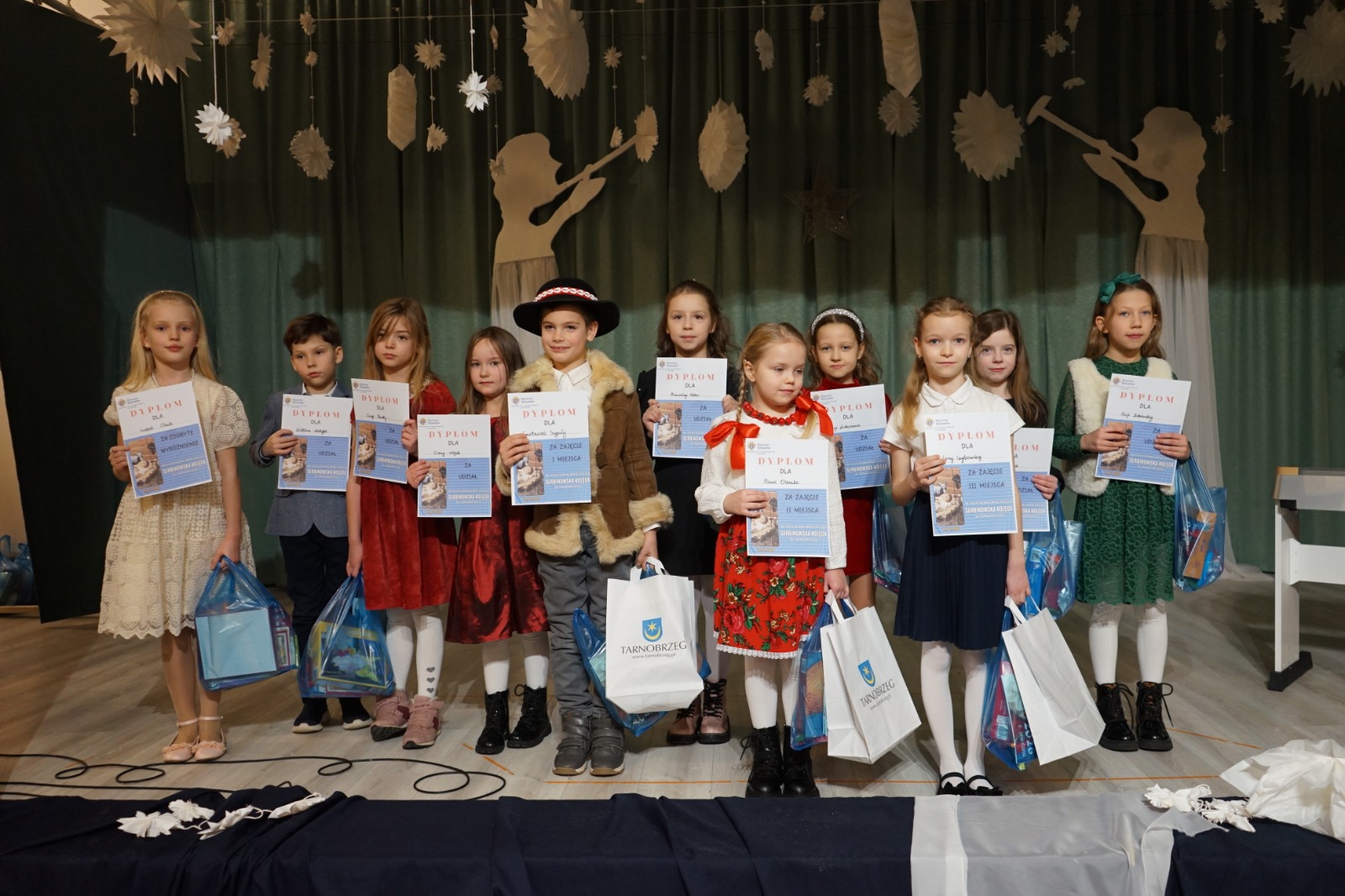 Tym, którzy stanęli na podium wręczono nagrody, pozostali uczestnicy otrzymali pamiątkowe dyplomy i upominki. Dziękujemy rodzicom za przygotowanie dzieci do konkursu, dzięki pięknemu wykonaniu kolęd i pastorałek wszyscy mogliśmy powrócić do atmosfery radości i pokoju, jaka towarzyszyła nam podczas przeżywania Świąt Narodzenia Pańskiego.