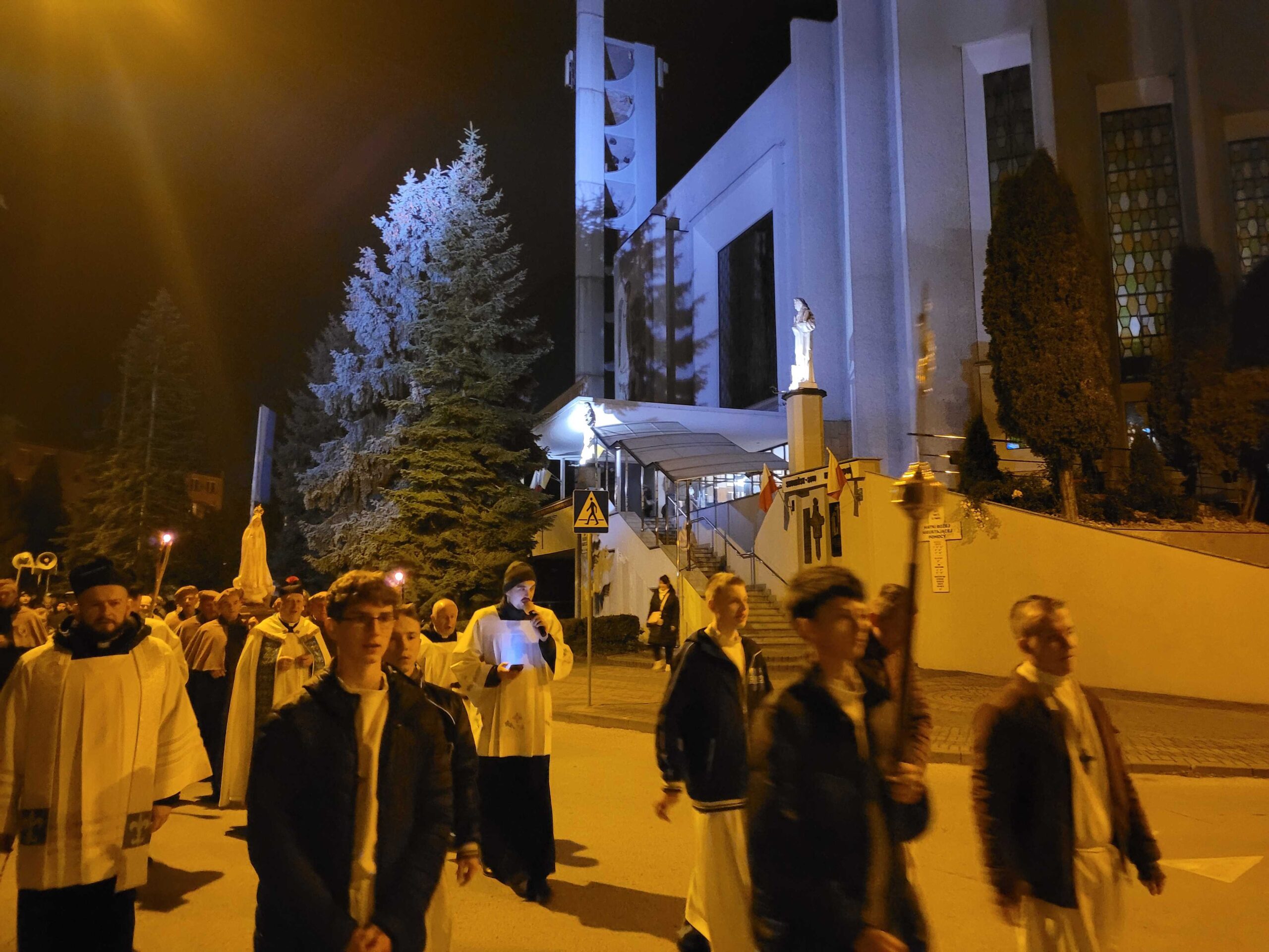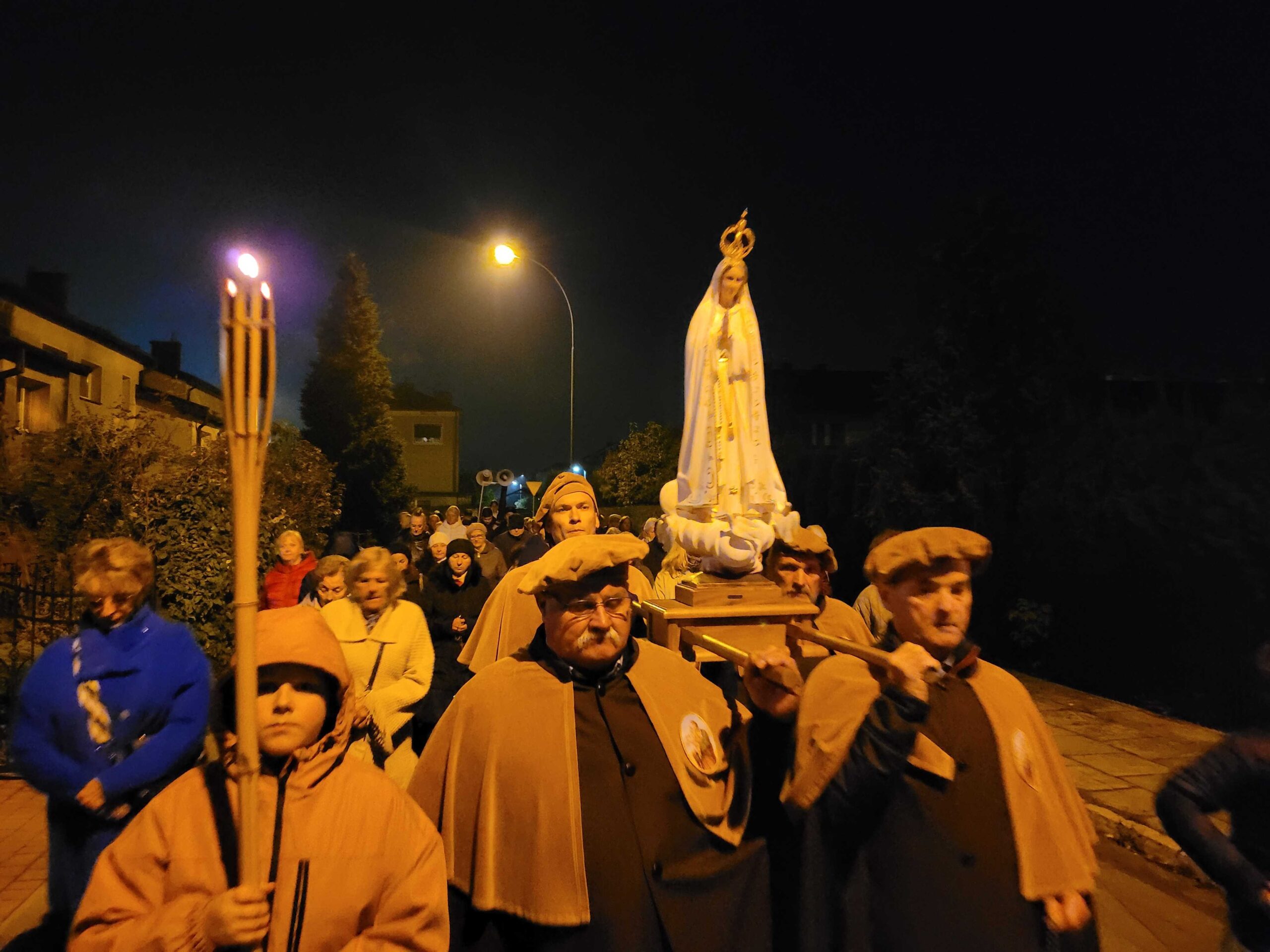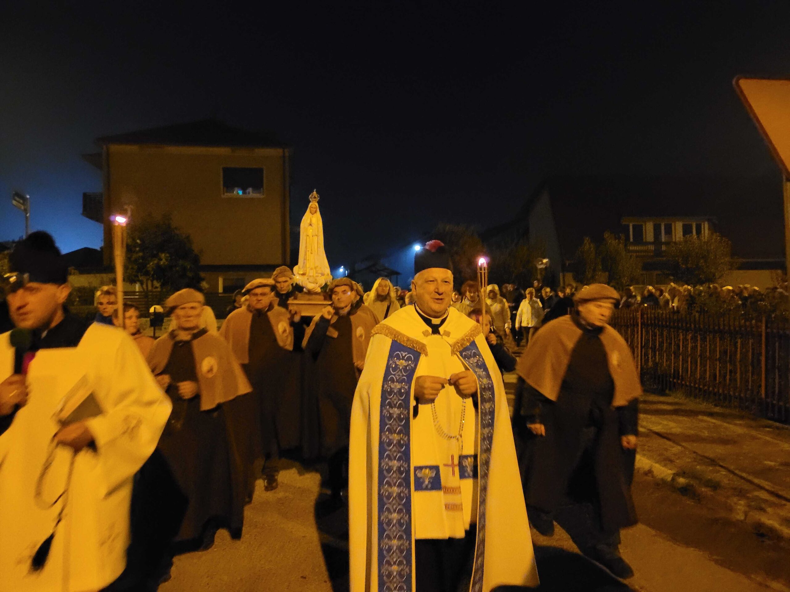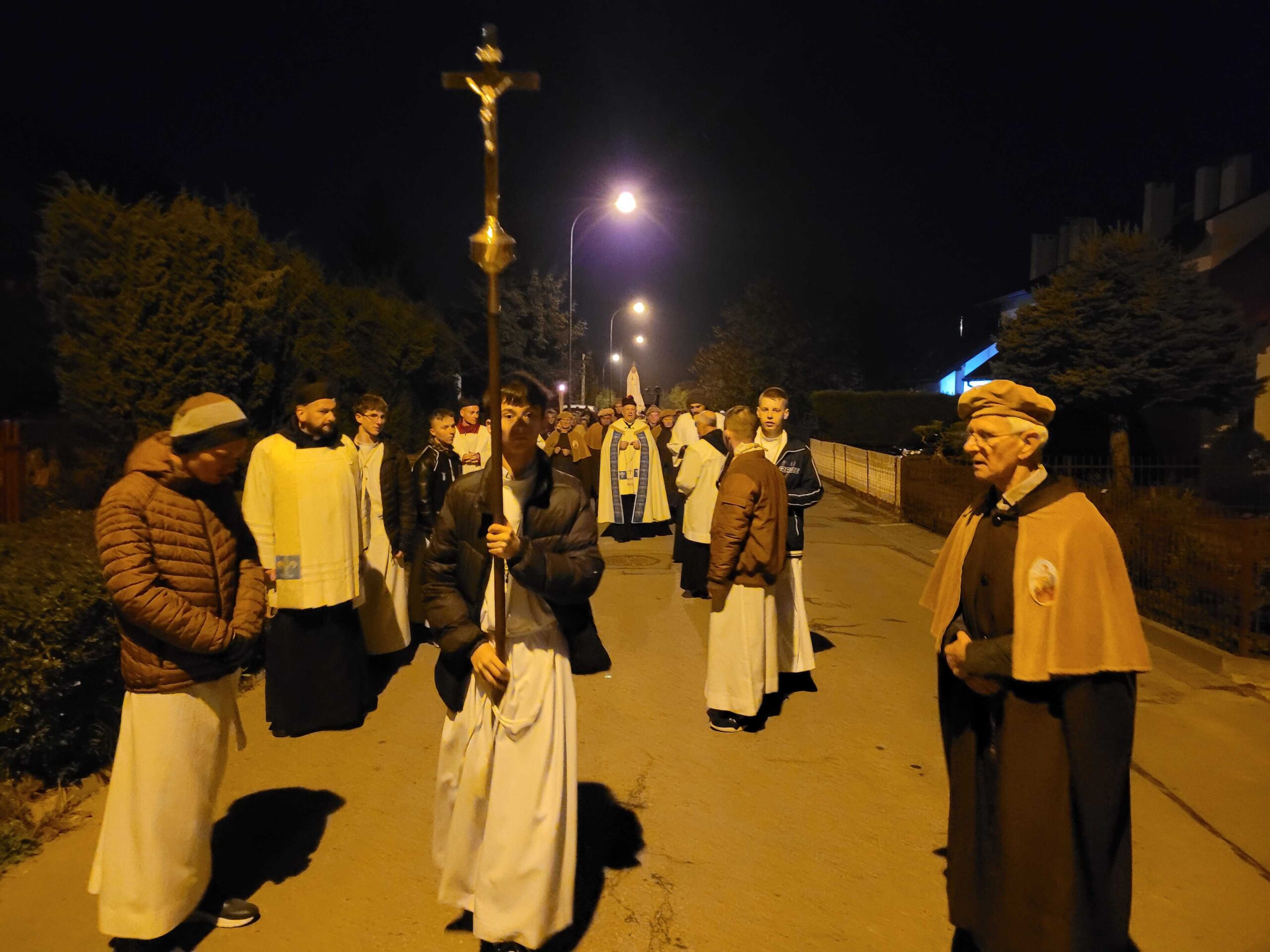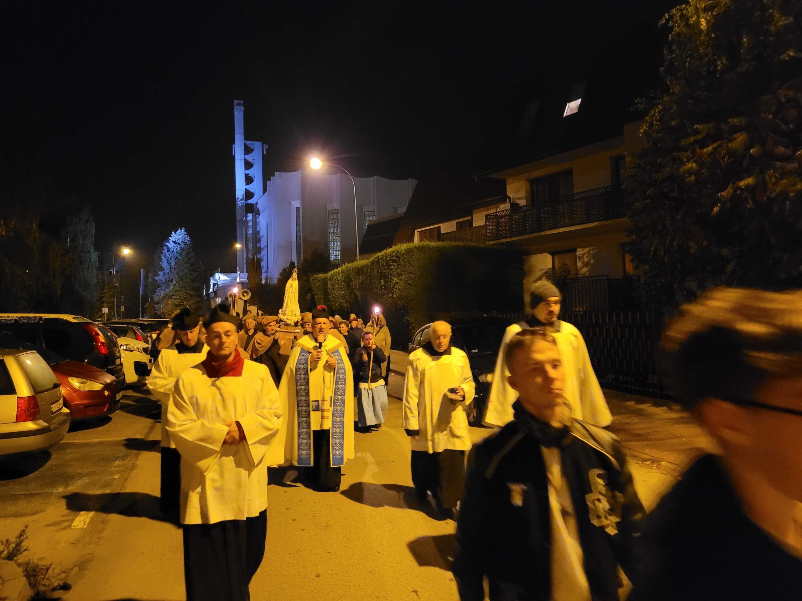 Po zakończonej liturgii, z kościoła wyruszyła procesja fatimska. Figura Matki Bożej, niesiona na ramionach mężczyzn, została oświetlona blaskiem świec trzymanych oraz licznie zgromadzonych parafian. Idąc ulicami serbinowskiego osiedla, wspólnie odmawialiśmy różaniec, powierzając Maryi nasze rodziny, parafię i wszystkie trudne sprawy współczesnego świata.